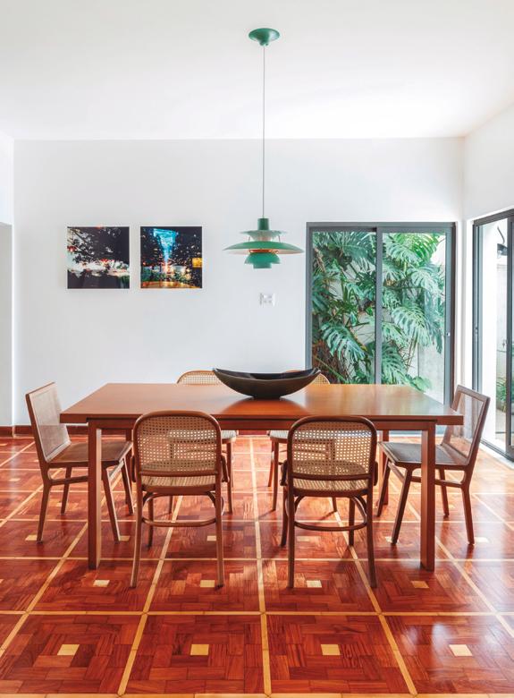Ambiente revitalizado com alma preservada: este projeto realizado por Juliana passou por um retrofit nos interiores, mantendo o piso original de madeira e as esquadrias, enquanto atualizações sutis trouxeram conforto e sofisticação à decoração