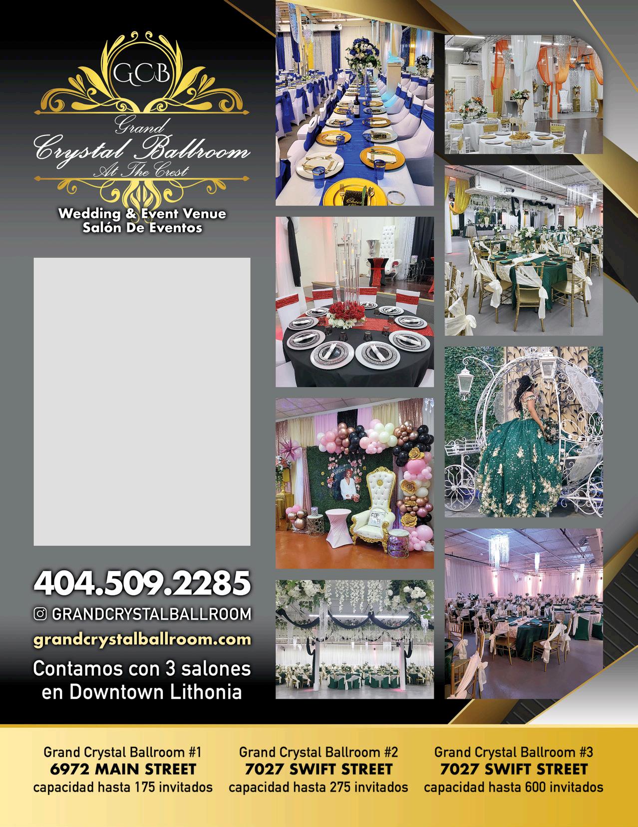 Grand Crystal Ballroom es un lugar de planificación de bodas y eventos todo incluido. Ofrecemos servicio de catering interno y colaboramos con proveedores preferidos como especialistas en globos, servicios de DJ, fotografía, oficiante de bodas, cámara 360 y proveedores privados de vestidos de novia, floristas, camareros y personal de seguridad. Nuestro lugar cuenta con bartenders con licencia y alquiler de equipo para satisfacer todas las necesidades de su evento.