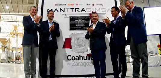 Frontera, Coahuila de Zaragoza.- Con una inversión inicial de 15 millones de dólares, MANTTRAGIMSA fue inaugurada hoy por el gobernador Miguel Ángel Riquelme Solís, quien acompañó en esta ceremonia a Gerardo Benavides Pape, presidente del Consejo de Administración de Grupo Industrial Monclova; Édgar Hernández, presidente de la Junta Directiva de Grupo MANTTRA Américas, y Christian Kaehler, Fundador y director de esta compañía.