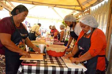 ente, para entregarlo en cada cam pamento (15) donde ahí lo servían a los comensales (3000), de esa manera no se hacia una fila inter minable y asi se podía servir cali ente, en cada campamento había la guarnición, los platos, cuchara y aguas frescas.