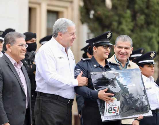 En la experiencia de su Gobierno que compartió con los asistentes, el gobernador Miguel Riquelme detalló los cambios radicales que se tuvieron en materia de seguridad, rubro en el que la 4T mantiene una crisis que no ha sabido ni podido contener. Coa huila, de acuerdo con las cifras del Secretariado Ejecutivo del Sistema Nacional de Seguridad Pública, ha bajado considerablemente su inci dencia en delitos de alto impacto, en un 81 por ciento, entre ellos los homicidios dolosos en un 83 por ciento. Es el segundo lugar nacional con mayor cantidad de denuncias que se judicializan, pero además, en la actual Administración se for taleció la infraestructura militar con mega cuarteles, bases de operación, por más de 2 mil 252 millones de pesos, aunado a la capacitación y equipamiento que se ha hecho de las corporaciones estatales y en tec