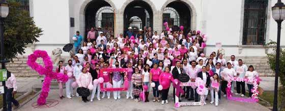 “La actividad del Día Rosa consistió en una caminata, misma que partió del Hospital General Cuatro Ciénegas, cul minando en la explanada del Palacio Municipal, donde las mujeres cieneguenses junto a funcionarias públicas que recorrieron las calles con men sajes del cuidado de la salud, fueron recibidas por las auto ridades y servidores médicos” enfatizó la Señora Catalina Mata.