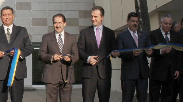 Rogelio Guillermo Garza Rivera, Secretario General de la UANL; Alfonso Verde Cuenca, Presidente del Consejo Ciudadano de Seguridad Pública; Francisco Cienfuegos Martínez, Presidente del Congreso del Estado; el Presidente del Tribunal Superior de Justicia, Gustavo Adolfo Guerrero Gutiérrez y el Director de la Facultad de Derecho y Criminología de la UANL, Manuel Acuña Zepeda.