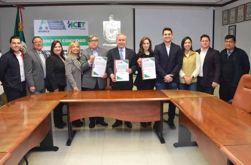 El Secretario de Ayuntamiento, Héctor Morales Rivera en representación del Alcalde César Garza Villarreal, Karla Martínez Elizondo, Secretaria de Fomento y Desarrollo Económico y Fernando Alfredo Iturribarría García, Director General del ICET, encabezaron la firma de convenio.