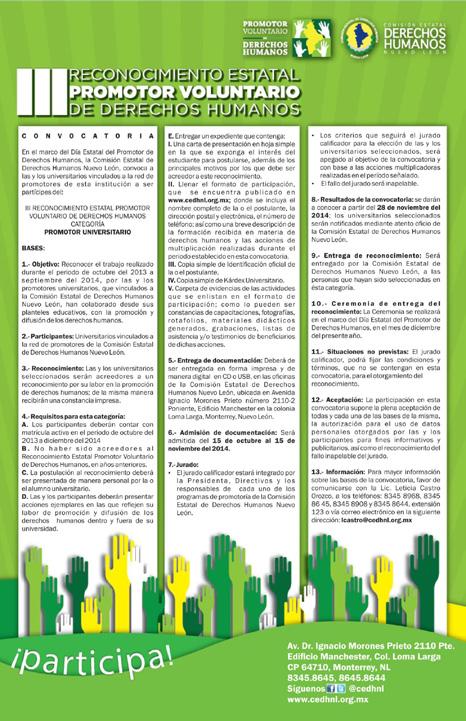 “La cual con su ayuda (Secretaría de Educación) será difundida entre los maestros y padres de familia de las instituciones educativas del Estado de Nuevo León”, señaló Mares Morán.