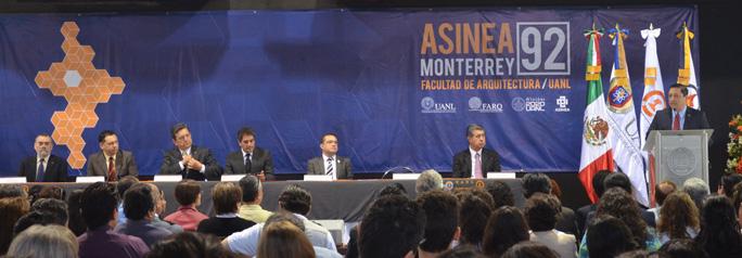 La sustentabilidad, la calidad de vida, el compromiso con la sociedad y colaboración interdisciplinaria, son algunos de los temas que se expusieron, discutieron y reflexionaron en la 92 Reunión Nacional de la Asociación de Instituciones de la Enseñanza de la Arquitectura de la República Mexicana, A.C. Dicha reunión se celebró los días 29, 30 y 31 de octubre de 2014 en la Facultad de Arquitectura de la Universidad Autónoma de Nuevo León. La ceremonia de inauguración se llevó a cabo en la Sala Polivalente y fue presidida por el Secretario de Obras Públicas del Estado de Nuevo León, Ing. Luis Gerardo Marroquín Salazar; el Presidente de la Asociación de Instituciones de la Enseñanza de la Arquitectura de la República Mexicana, A.C. (ASINEA), Arq. Anuar Abraham Kasis Ariceaga; el Presidente de la 92 Reunión Nacional de la ASINEA y Director de la Facultad de Arquitectura, Arq. Francisco Fabela Bernal.