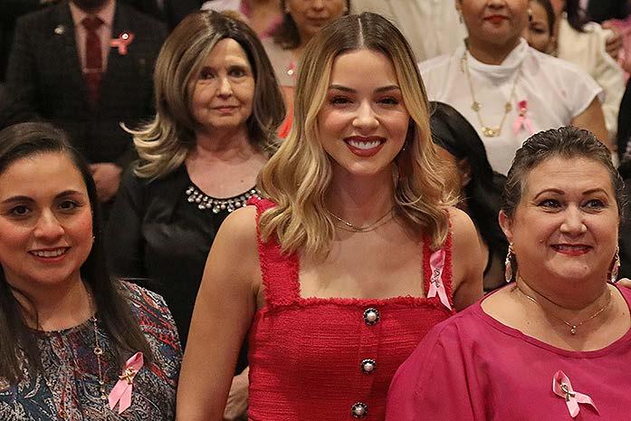 Encabezado por Mariana Rodríguez Cantú, titular de AMAR a Nuevo León, el acto conmemorativo tuvo la presencia de Alma Rosa Marroquín Escamilla, Secretaria de Salud estatal y de un nutrido grupo de beneficiarias del programa de Cobertura Universal contra el Cáncer de mama.