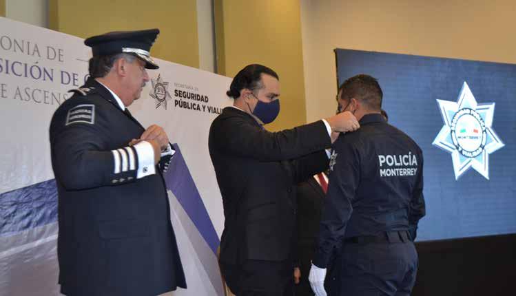 El Municipio de Monterrey reconoció a 34 elementos operativos que recibieron nuevos grados dentro de la Secretaria de Seguridad Pública y Vialidad, luego de haber acreditado todo el proceso de la promoción de ascensos 2021.