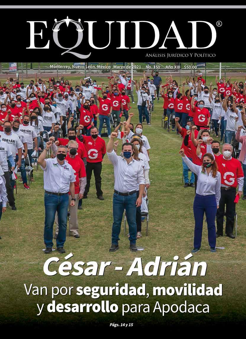 EQUIDAD ANÁLISIS JURÍDICO Y POLÍTICO, Revista Mensual. MARZO 2021. Editor responsable: RAÚL CARRIZALES GONZÁLEZ. Certificado de Reserva de Derechos al Uso Exclusivo del Título EQUIDAD ANÁLISIS JURÍDICO Y POLÍTICO No. 04-2012-041914200700-102, otorgado por el Instituto Nacional del Derecho de Autor, de fecha 19 de abril del 2012 (vigente). Número de Certificado de Licitud de Título y Contenido 16268, expedido por la Comisión Calificadora de Publicaciones y Revistas Ilustradas de la Secretaría de Gobernación, de fecha 14 de Julio del 2014. EQUIDAD, es Marca Registrada con el número 1374245, de fecha 7 de Junio del 2013, expedido por el Instituto Mexicano de la Propiedad Industrial. Domicilio de la publicación: Vasco de Gama 305 Col. Treviño, Monterrey, N.L., Monterrey, N. L. C.P. 64570. Impreso por Facsímil Arte Gráfico, S.A. de C.V., con domicilio en Félix U. Gómez No. 2818 Norte. Col. Cementos, Monterrey, N. L. C.P. 64520. Distribuidor: RAÚL CARRIZALES GONZÁLEZ (mismo domicilio de publicación).