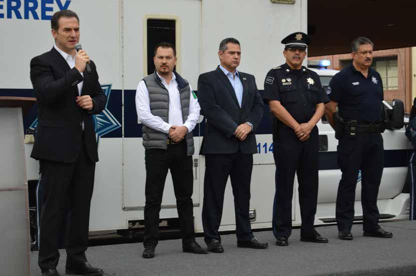 “Ustedes saben las condiciones en que estaban las unidades al principio de esta Administración, eran 12 o 15 Atos, lo primero que hicimos fue, en menos de un mes, entregarles las herramientas adecuadas de transporte, adquirimos 100 patrullas, una cantidad de que no ha adquirido ningún Municipio de Nuevo León en la historia”, dijo el Alcalde.