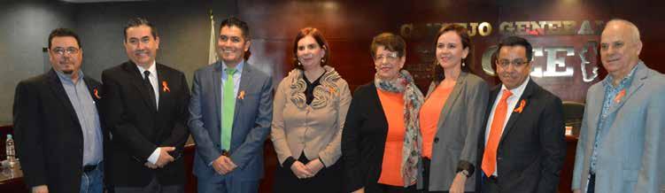 En señal de apoyo cada uno de los integrantes de la CTAINL portó un lazo naranja, y al término de la sesión se tomó una fotografía con todas las empleadas de la Comisión.