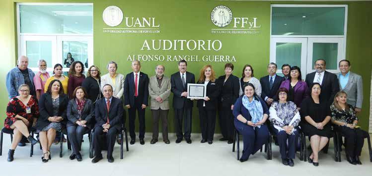El Rector de la Máxima Casa de Estudios, Rogelio Garza Rivera y la Directora de la Facultad de Filosofía y Letras, Ludivina Cantú Ortiz, recibieron el reconocimiento en manos del Presidente del CEPPE, Benito Guillén Niemeyer.