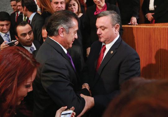Teniendo como testigo el patio del Palacio de Gobierno, el Gobernador Jaime Rodríguez Calderón, les tomó protesta a Roberto Flores Treviño y Carlos Alberto Garza Ibarra, como Procurador General de Justicia y Secretario de Finanzas y Tesorero General del Estado, respectivamente.
