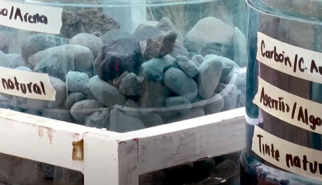 “Nosotras teníamos que buscar una solución que no fuera tan industrial, porque los artesanos y sus familias no la iban a poder implementar en sus casas y talleres. Teníamos que buscar la solución económica, no dañina para el ambiente y que preservara los saberes tradicionales de la comunidad. Entonces, mediante el uso de garrafones llenos de materiales naturales, como grava y arena, se retuvieron los sólidos. Después esa agua se filtró en garrafones con carbón y algodón, los cuales disminuyeron los contaminantes, color, olor, coliformes y nitrógeno amoniacal”
