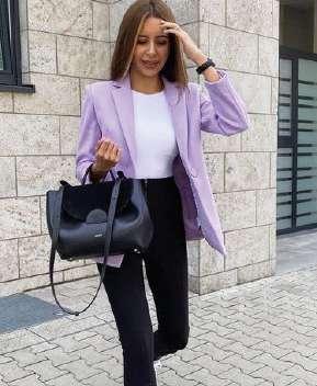 Con el color lila, te brindamos dos opciones para combinarlo: llévalo con otras prendas en tonos pastel o con piezas en colores neutros como el gris, el blanco y el negro.