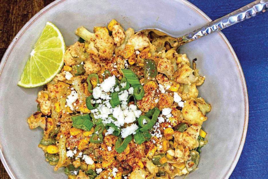 En un bowl grande coloca el mix de lechugas, el pepino cortado en medias lunas, el elote crujiente, la pechuga de pollo en tiras y mucho queso cotija, como buen esquite.