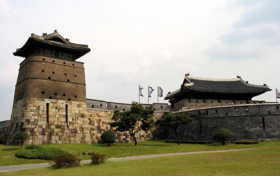 Suwon, localidad con un centro histórico plagado de fortificaciones y ubicada a unos 30 kilómetros de Seúl, estuvo a punto de convertirse en capital coreana en el siglo XVIII, lo que explica que (antes del trasla do de la corte real) se levantase una muralla defensiva que protegiera la ciudad. Puesto que la capitalidad se mantuvo finalmente, la ciudad aca bó convirtiéndose en una atracción turística cuyo principal reclamo es la fortaleza de Hwaseong, patrimonio mundial. Aunque resultó muy daña daduranteelperíodocolonial(princi pios del sigloXX)y laposteriorGuerra de Corea (década de 1950), la restau ración iniciada en la década de 1970