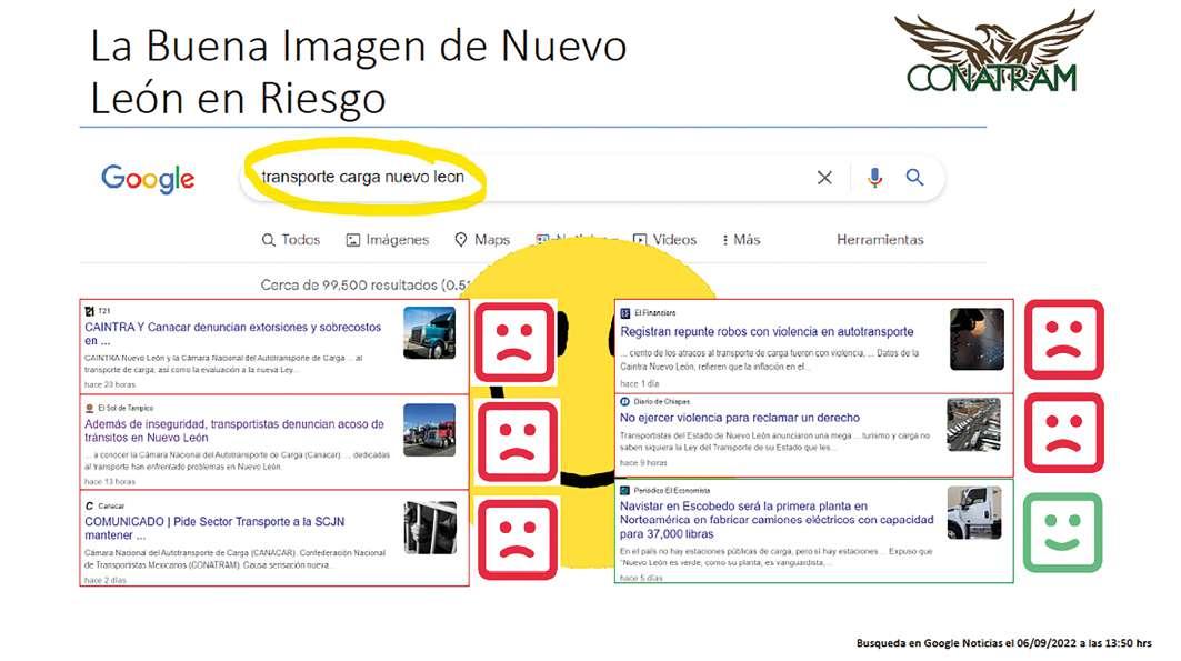 Sin embargo, no todo fue fiesta, Conatram arrancó el primero de septiembre, con reunión de diputados federales en el Congreso de la Unión, para plantear el abandono que tenemos por la Guardia Nacional en nuestras carreteras, así como el caos que se vive en Monterrey y zona conurbada donde policías municipales y empresas de grúas, son una verdadera delincuencia uniformada.