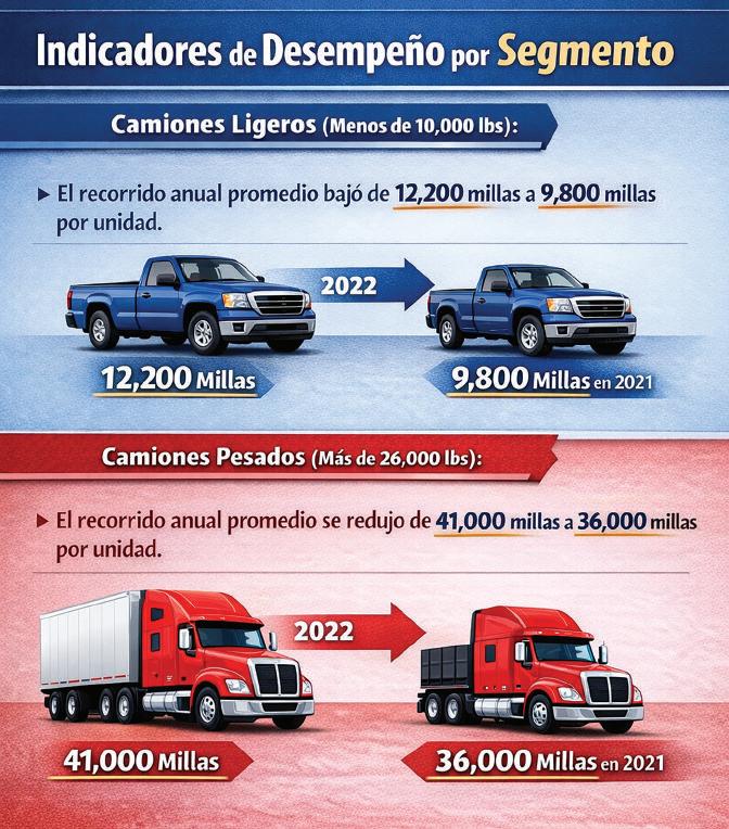 • Camiones Pesados: 1.6 millones de unidades adicionales promediaron 22,500 kilómetros cada una.