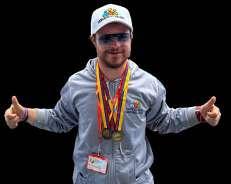 Este deportista oriundo del Municipio de Garzón se coronó campeón de los 50 metros estilo libre en las XXV Olimpiadas Especiales FIDES – Compensar, evento deportivo realizado en Bogotá del 1 al 7 de junio. Santiago es cristiano y se congrega en la iglesia Casa Sobre la Roca en Garzón, Huila.