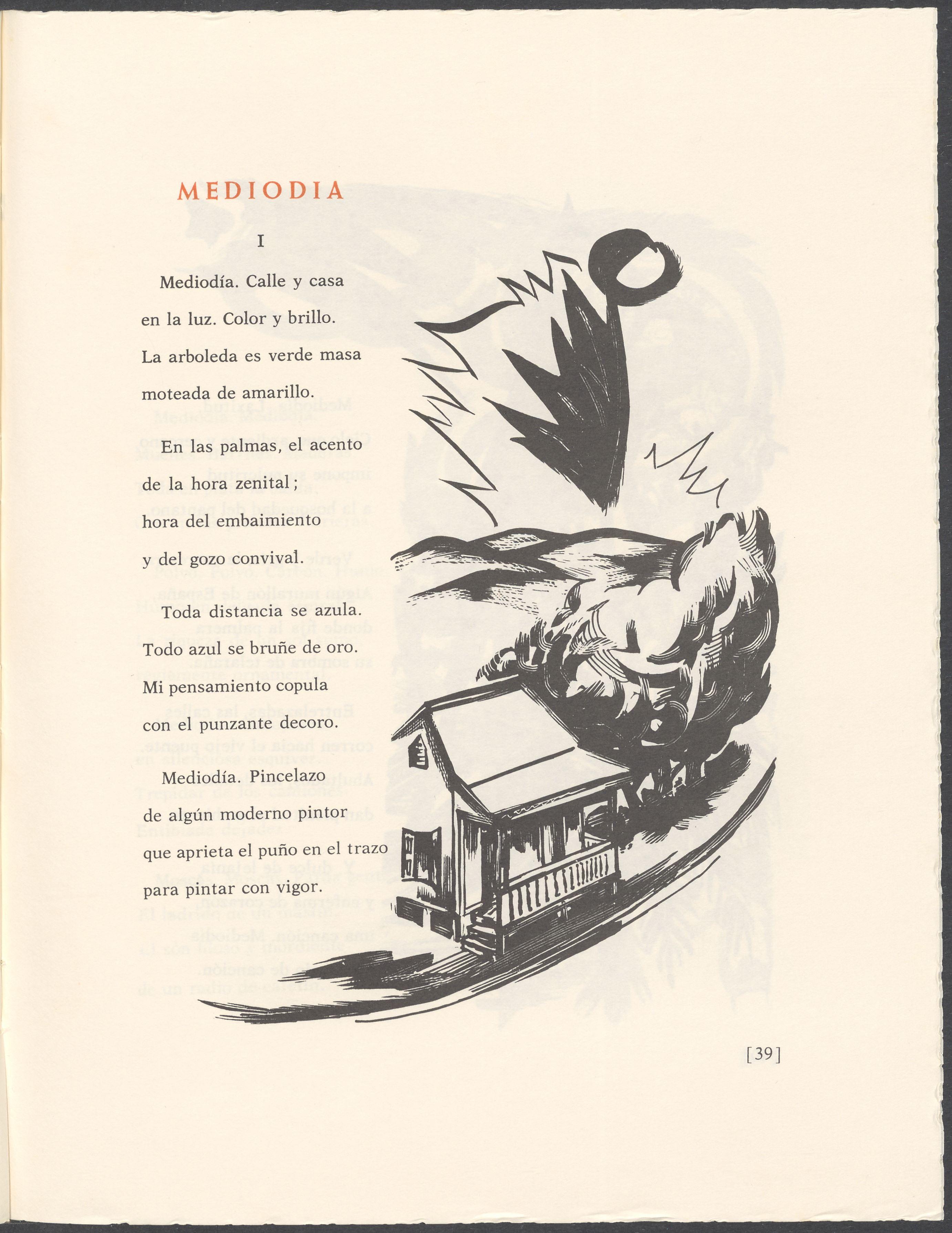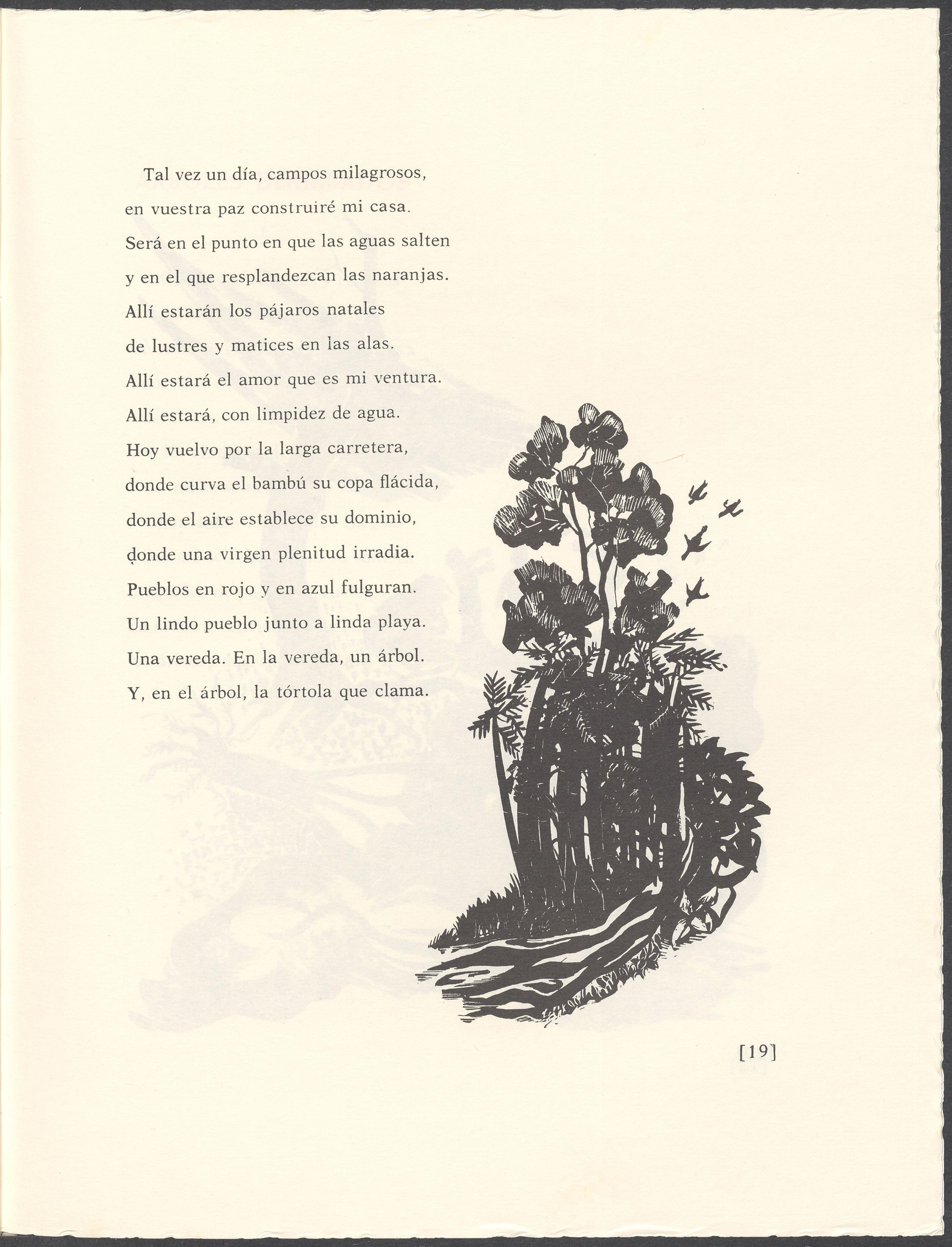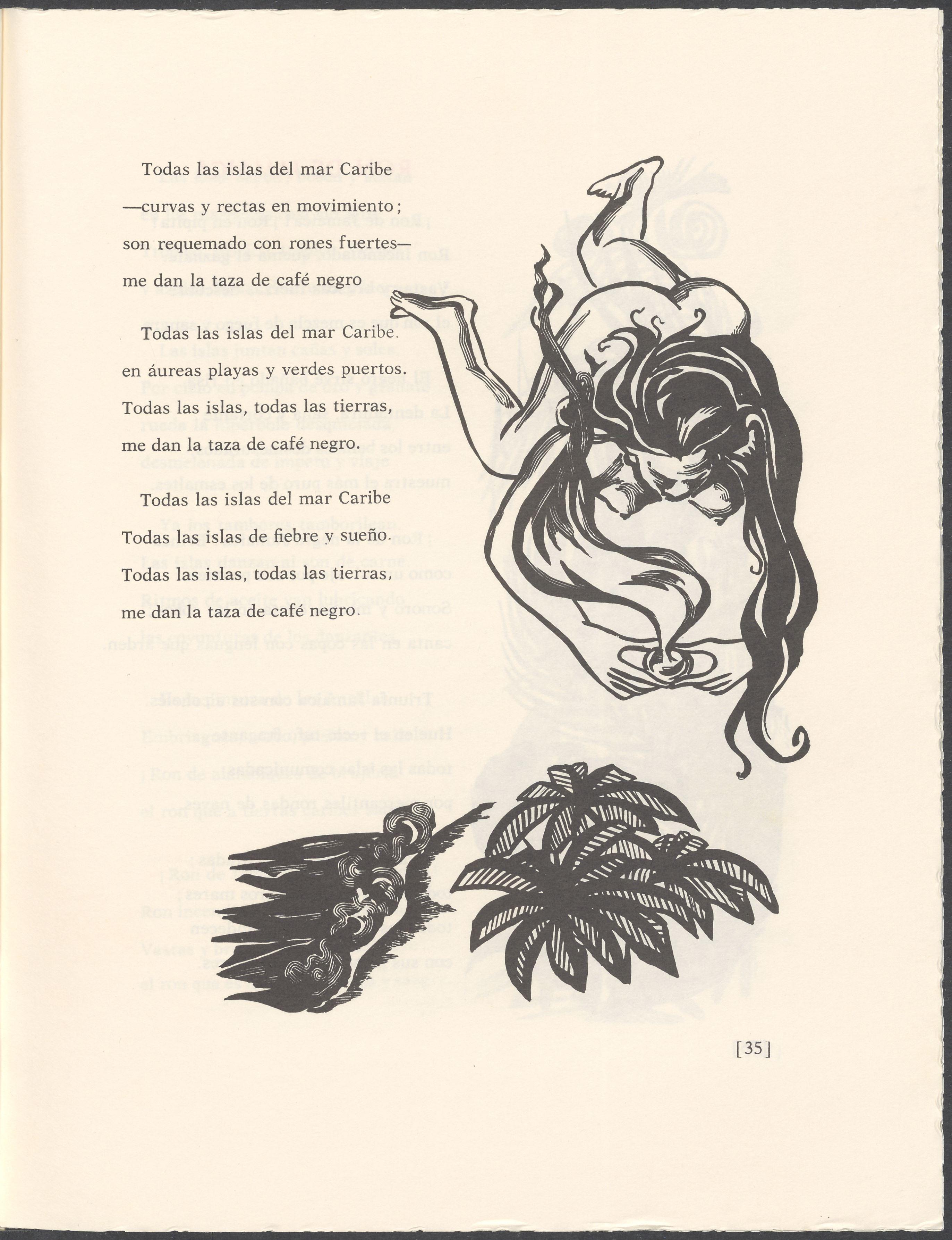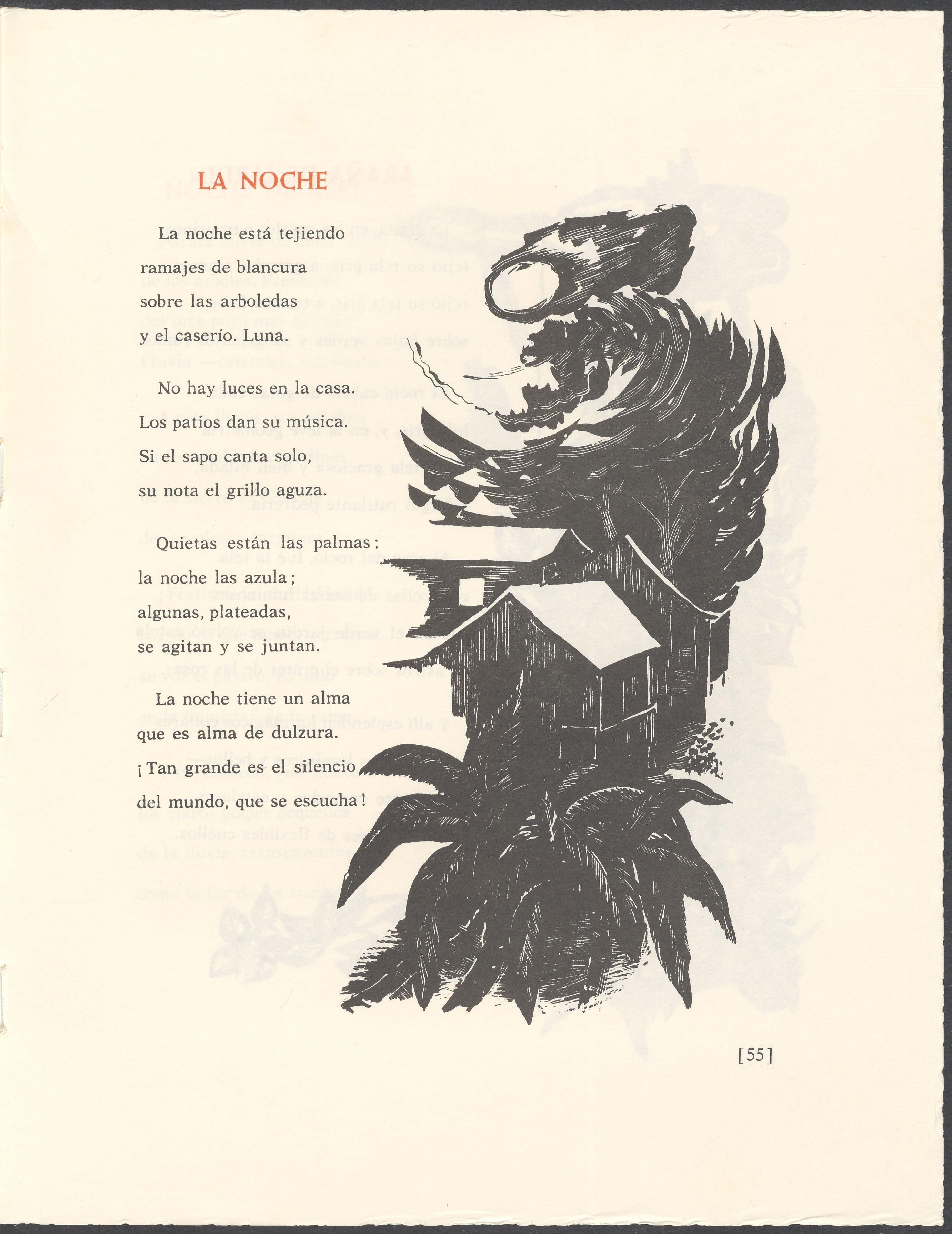 Eres morena, y es tu sangre azúcar de púrpura en los caños de tus venas. Hay en tus manos —tazas bronceadas— arenas de Mogreb, rosas de Iberia. De España al Archipiélago, tus padres hierven su sal en andaluza estela. Aguas peninsulares y caribes descubren en sus conchas tu belleza. Y, hallándote en la cuna de las islas, en la que te amamantan las estrellas, dase a creer tu corazón criollo al denso hervor de las nativas fuerzas. Africas lujuriantes y tostadas, cundidas de serpientes y palmeras, dicen que surgirás donde dominen las formas de la fiebre y la indolencia