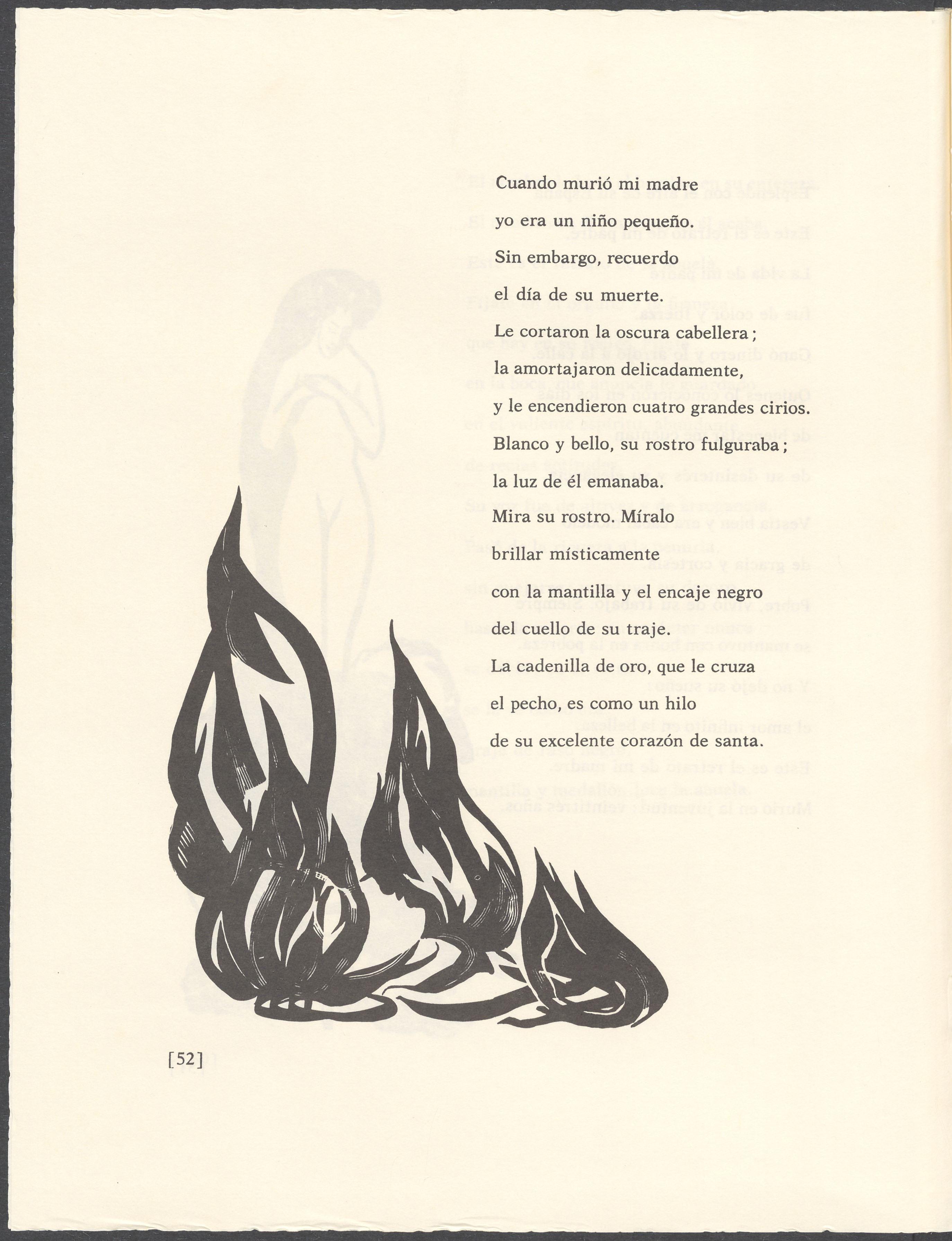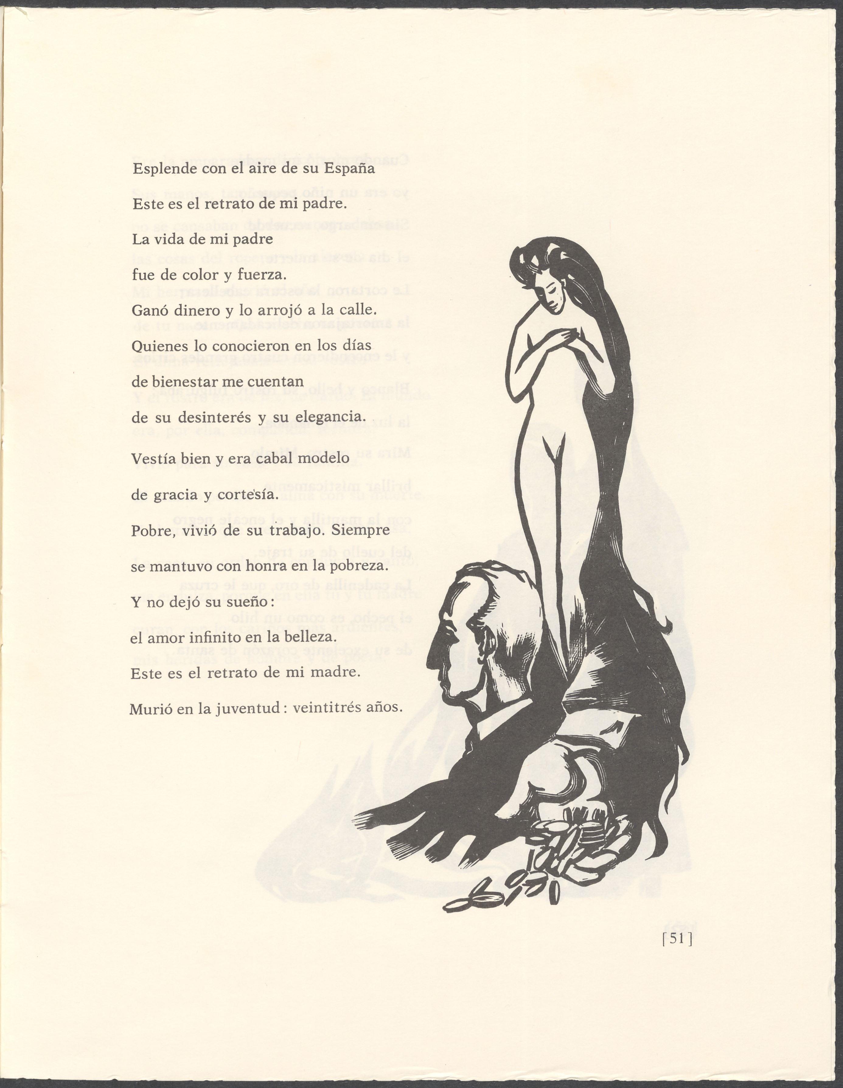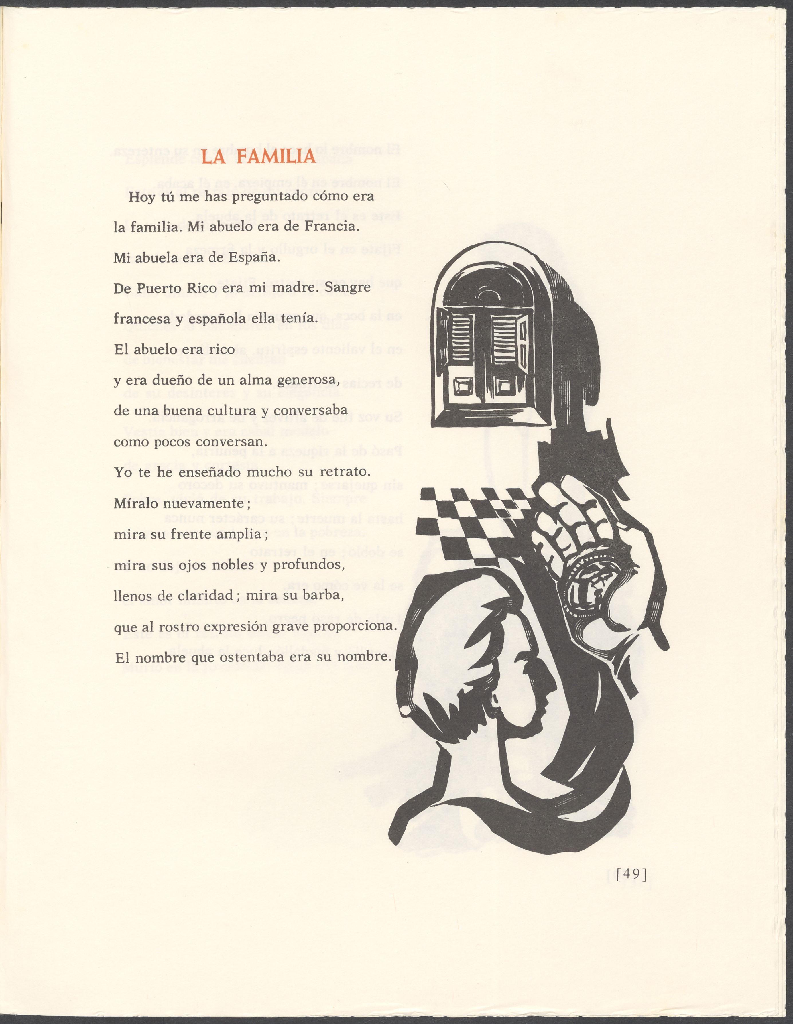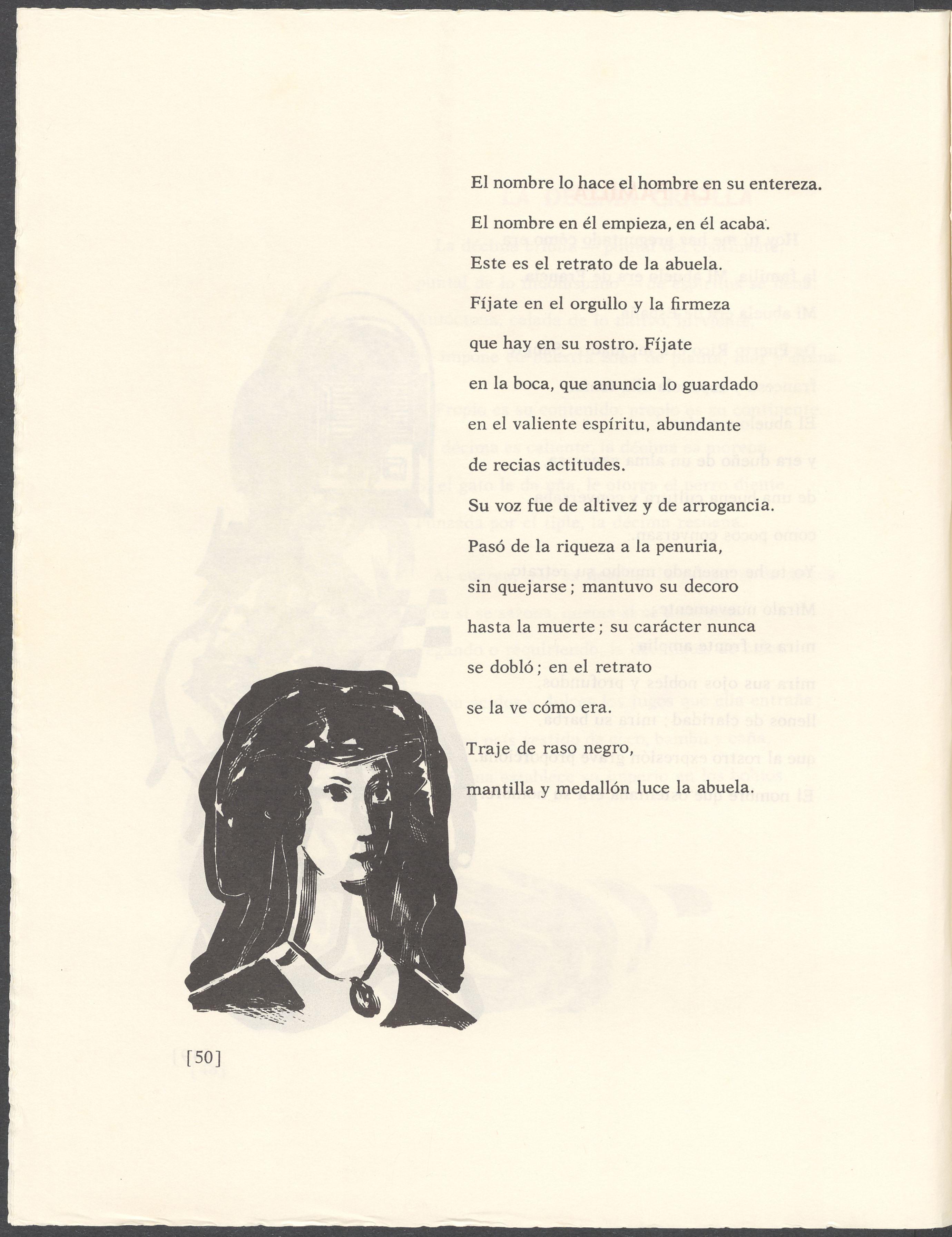 Eres morena, y es tu sangre azúcar de púrpura en los caños de tus venas. Hay en tus manos —tazas bronceadas— arenas de Mogreb, rosas de Iberia. De España al Archipiélago, tus padres hierven su sal en andaluza estela. Aguas peninsulares y caribes descubren en sus conchas tu belleza. Y, hallándote en la cuna de las islas, en la que te amamantan las estrellas, dase a creer tu corazón criollo al denso hervor de las nativas fuerzas. Africas lujuriantes y tostadas, cundidas de serpientes y palmeras, dicen que surgirás donde dominen las formas de la fiebre y la indolencia