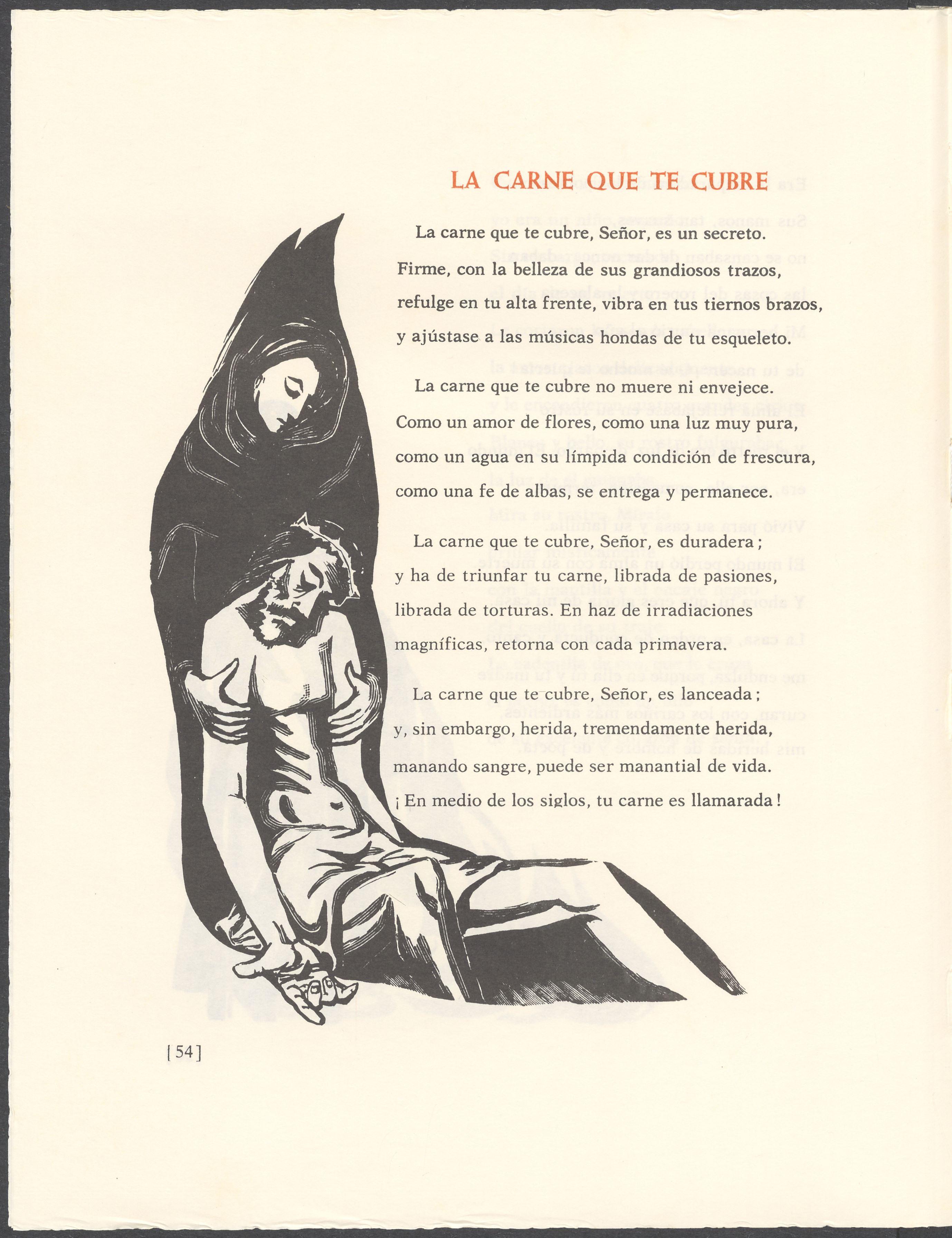 La carne que te cubre, Señor, es duradera; y ha de triunfar tu carne, librada de pasiones, librada de torturas. En haz de irradiaciones magníficas, retorna con cada primavera.