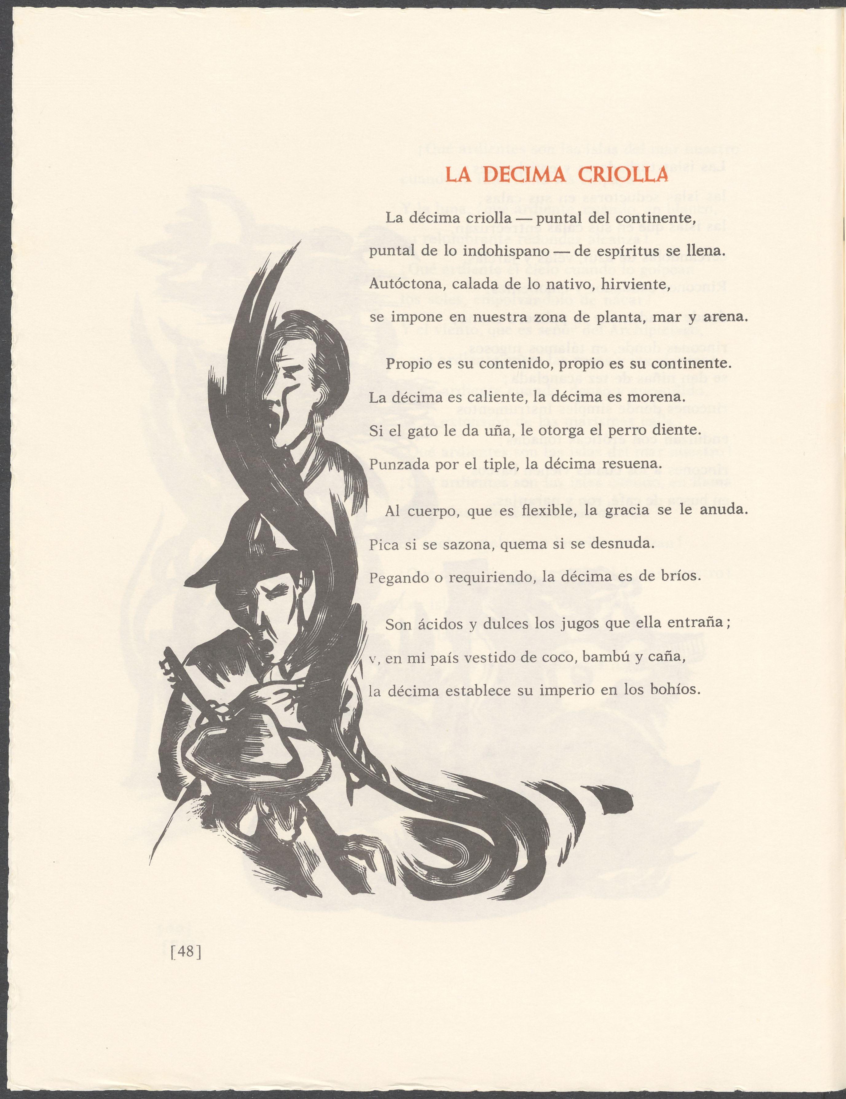 La décima criolla— puntal del continente, puntal de lo indohispano — de espíritus se llena.