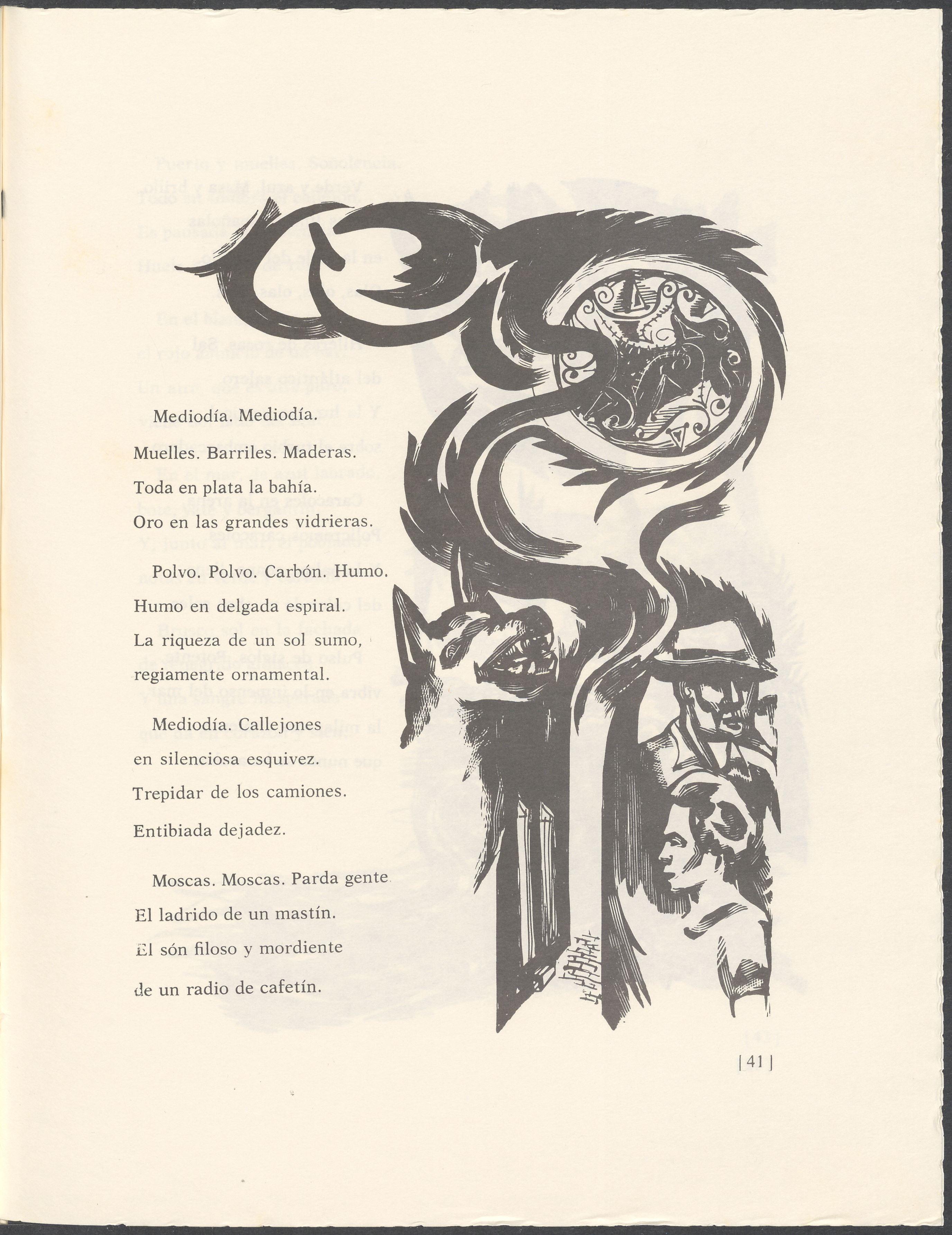 Puerto y muelles. Soñolencia. Todo en sombra el callejón. Es pausada la existencia. Huele a pipita de ron.