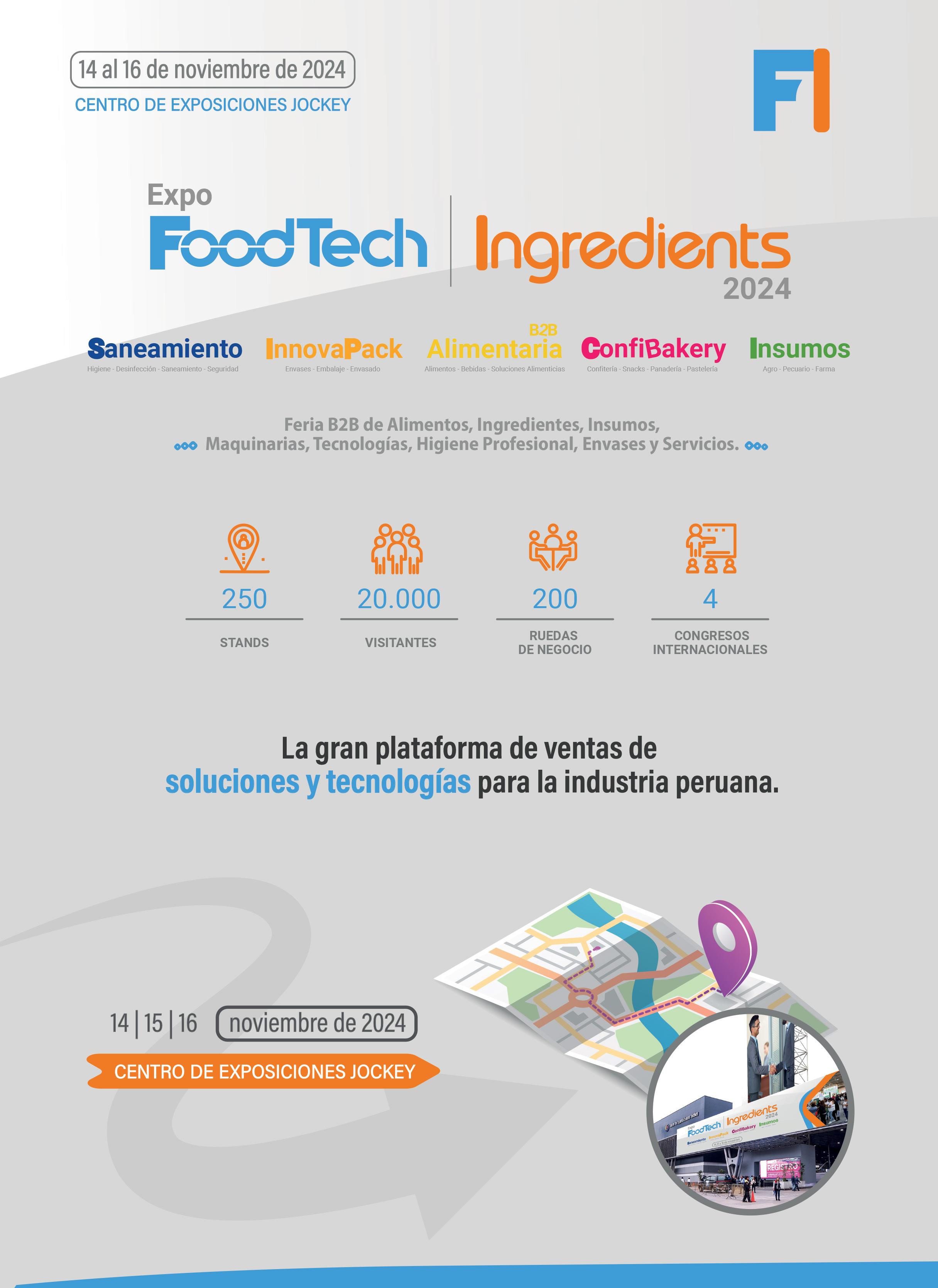 Fecha: Del 14 al 16 de noviembre de 2024 Lugar: Centro de Exposiciones Jockey, Lima- Perú Web: https://expoingredients.com/