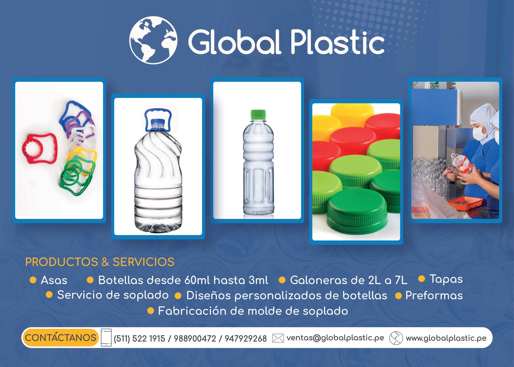 Global Plastic fue fundado en 2006 por mi papá, Hugo Pérez, inicialmente para la fabricación de autopartes de plástico. Sin embargo, al poco tiempo nos dedicamos a la producción de envases de plástico tanto para el rubro de alimentos como el de limpieza. Poco a poco fuimos adquiriendo diferentes clientes, lo que nos ha permitido tener actualmente un 80% de nuestra producción en envases de plástico PET, con presentaciones desde 60 ml hasta 7 litros.