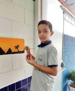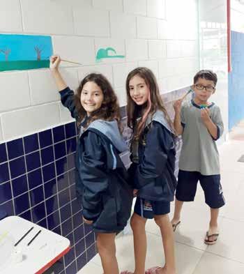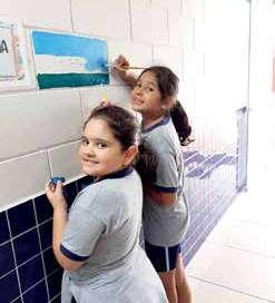 O projeto de arte “Explorando as paredes da escola como suporte para pintura” tem como objetivo experimentar a criação em artes visuais de modo individual, coletivo e colaborativo, explorando diferentes espaços da escola e da comunidade. O trabalho foi desenvolvido pela professora Karla Queiroz com as turmas de terceiro ano B e D.