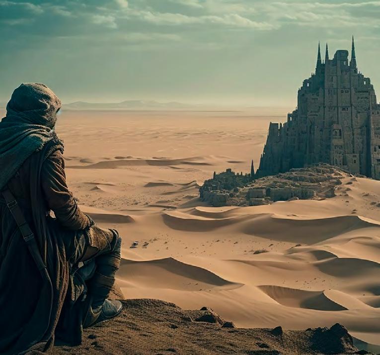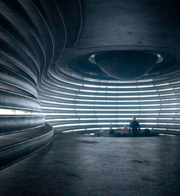 personajes con su entorno y defnen sus destinos. Con líneas puras, elementos de escala monumental y un uso magistral de la luz en los espacios, Dune se convierte en una auténtica experiencia arquitectónica llevada a la pantalla, donde cada rincón y estructura cuenta una historia propia.