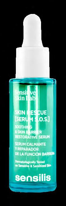 Sensilis Skin Rescue (Serum S.O.S.): de textura ultraligera, calma y repara la piel en 30 minutos, reduciendo visiblemente el enrojecimiento. Ideal para pieles que requieren recuperación rápida tras un procedimiento médico-estético o un efecto calmante inmediato, como después de la depilación o de quemaduras solares.
