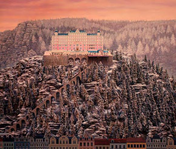 Elevado en lo alto de montañas nevadas en la fcticia provincia de Zubrowka, el hotel evoca una profunda nostalgia por una era de esplendor y grandeza. Su impresionante diseño, con una mezcla de estilos arquitectónicos y detalles ornamentales, no solo captura la imaginación del espectador, sino que también amplifca el tono melancólico de la película. En este escenario espectacular, se entrelazan aventuras, se forjan relaciones y se desarrolla una narrativa rica en matices visuales, transportando al público a un mundo surreal.