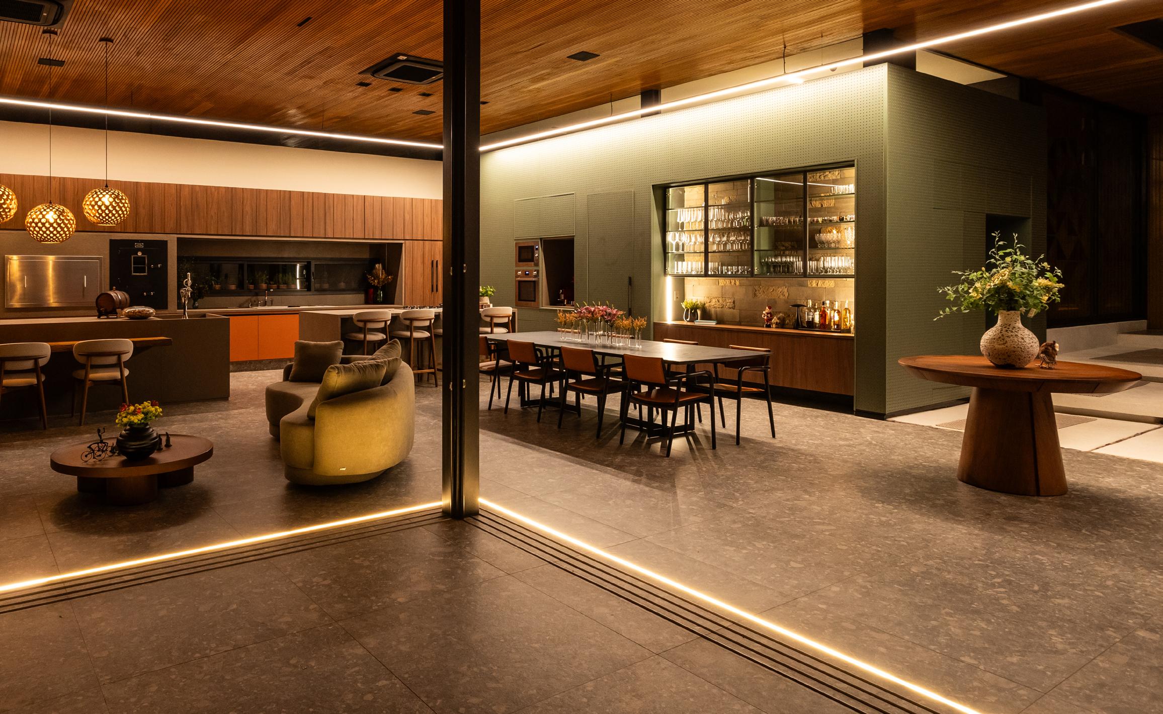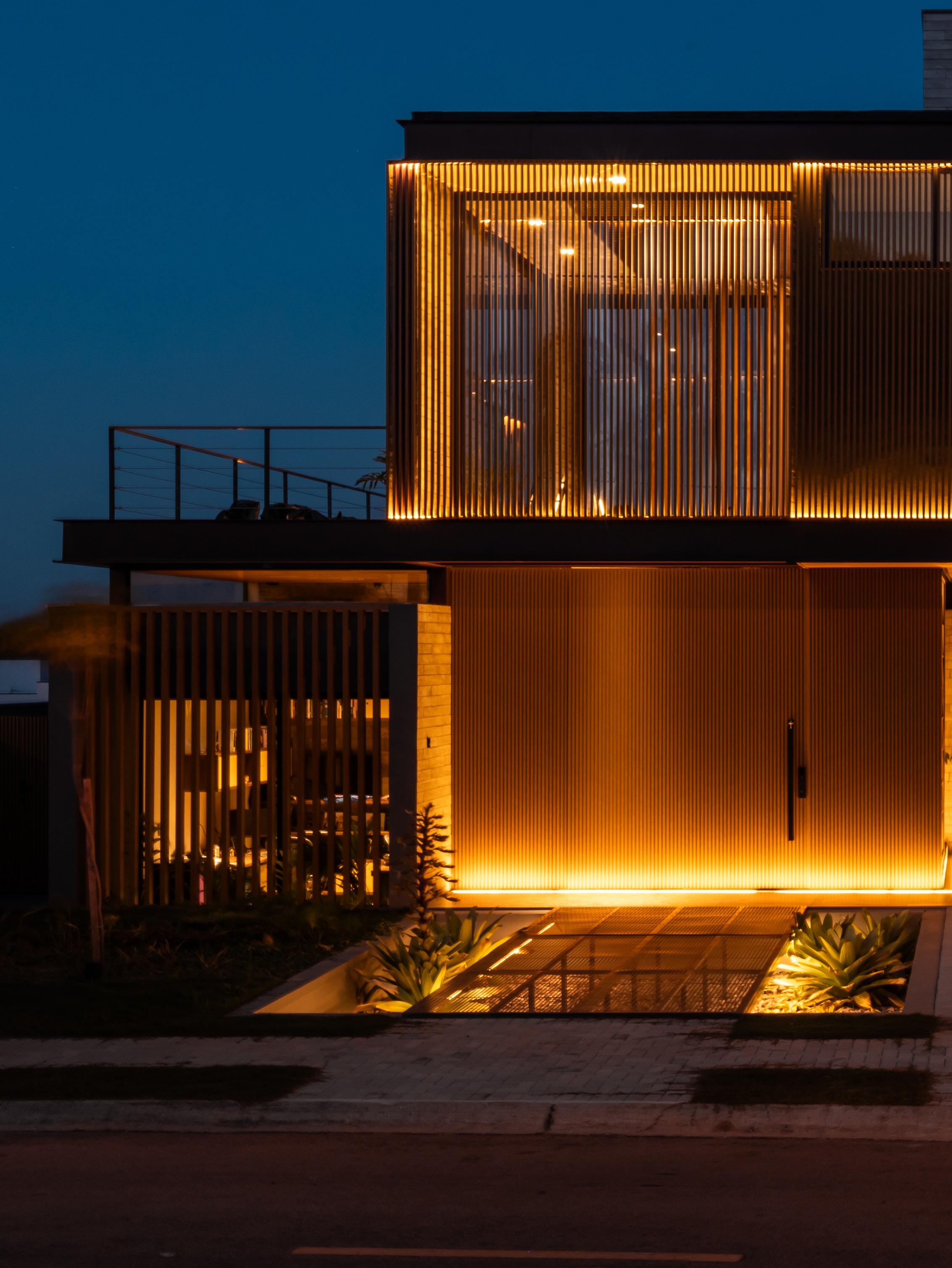 No projeto residencial em Itupeva/SP, foi utilizado o nosso produto Beam Line, um perfil embutido no solo, totalizando 32 metros de extensão, abrangendo a área externa da garagem e os espaços comuns.