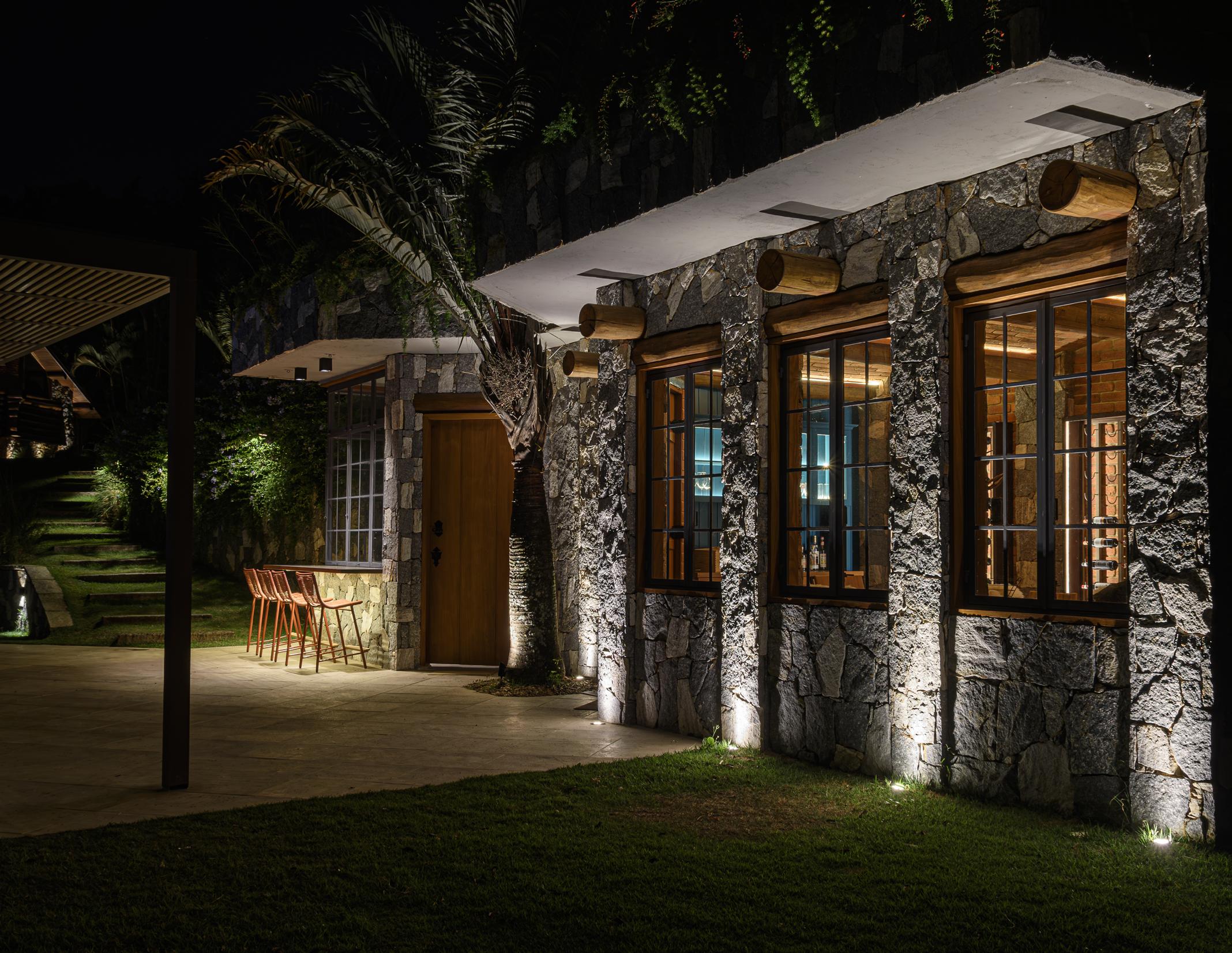 Residência no interior Iluminação automatizada promove a integração dos ambientes internos e externos da Casa Carvalho