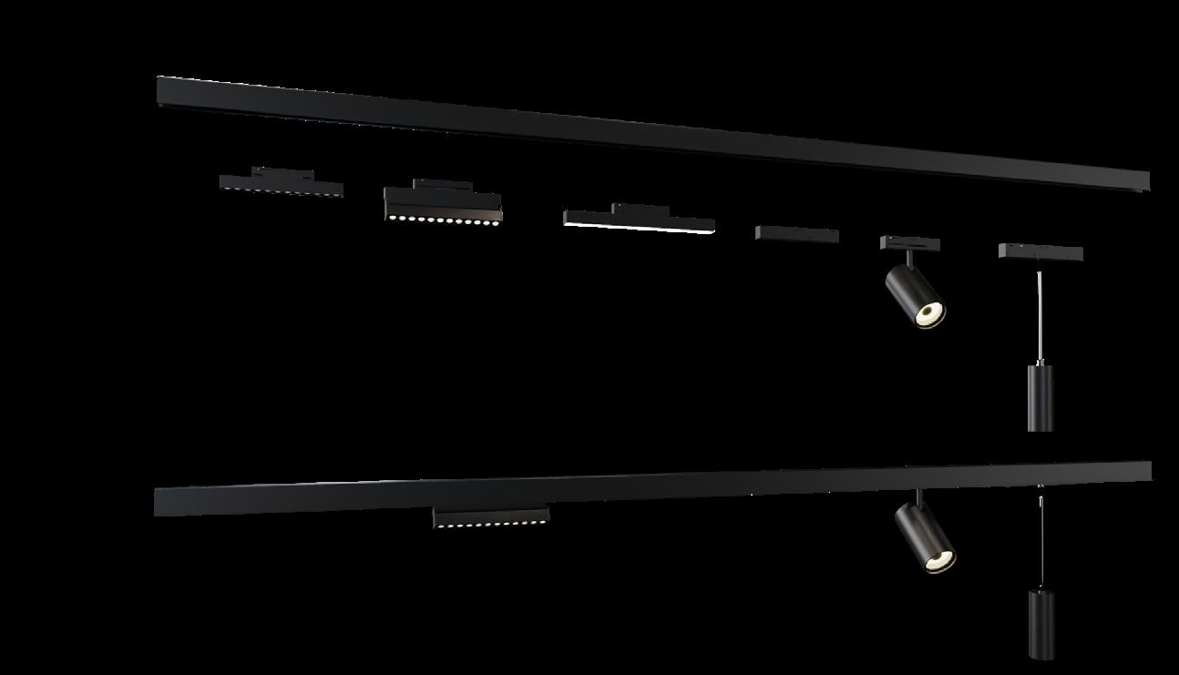 obra de arte, com destaque, em relação às outras áreas, como as circulações. Nesse sentido, a escolha do trilho foi fundamental para que pudéssemos distribuir na loja inteira diferentes fontes de iluminação com funcionalidades distintas. Vale salientar que as luminárias para luz focada contam com sistema darklight para alto controle do ofuscamento”, disse o CEO da WeLight.