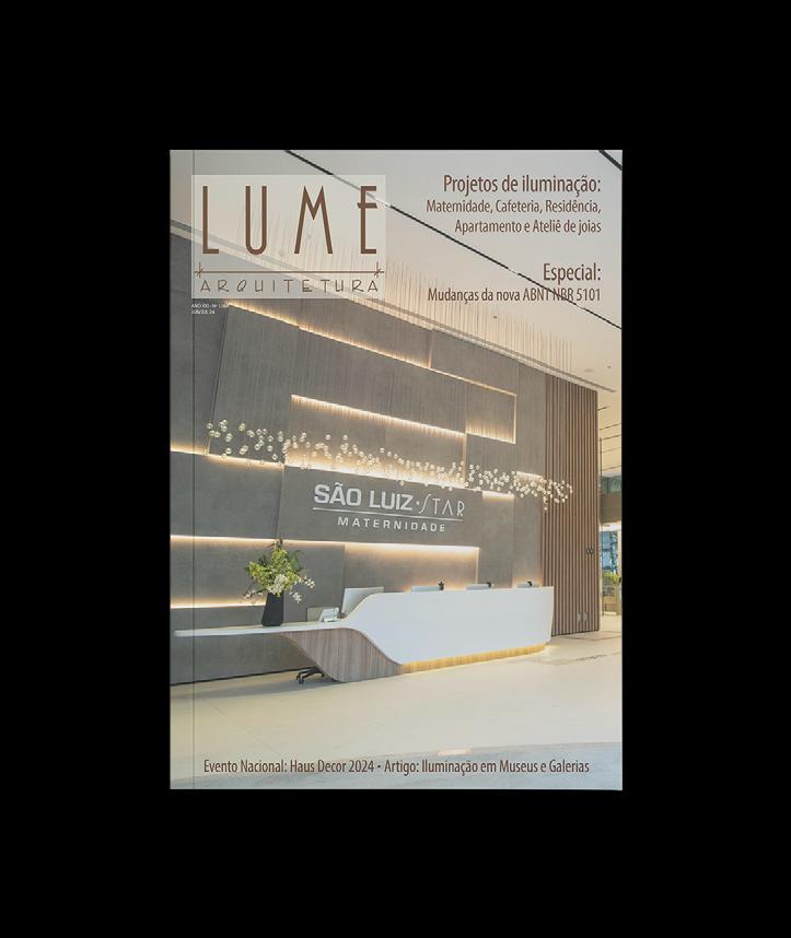 A revista Lume Arquitetura é uma publicação bimestral da Lume Editora e Comunicação , dirigida a arquitetos, lighting designers, decoradores, engenheiros, construtoras, incorporadoras, órgãos públicos ligados à iluminação urbana e viária, fabricantes e lojistas do setor de iluminação. Os artigos e matérias assinadas são de responsabilidade dos autores. A revista não se responsabiliza pelo conteúdo dos anúncios veiculados. Proibida a reprodução parcial ou integral das matérias publicadas sem autorização da Editora.