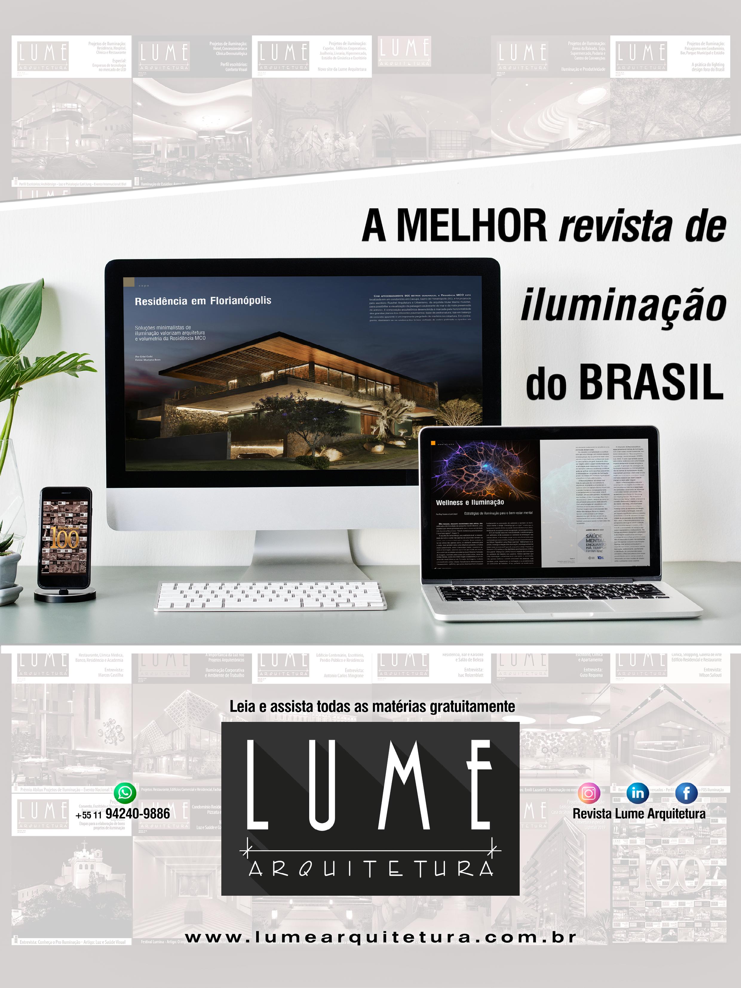 A revista Lume Arquitetura é uma publicação bimestral da Lume Editora e Comunicação , dirigida a arquitetos, lighting designers, decoradores, engenheiros, construtoras, incorporadoras, órgãos públicos ligados à iluminação urbana e viária, fabricantes e lojistas do setor de iluminação. Os artigos e matérias assinadas são de responsabilidade dos autores. A revista não se responsabiliza pelo conteúdo dos anúncios veiculados. Proibida a reprodução parcial ou integral das matérias publicadas sem autorização da Editora.