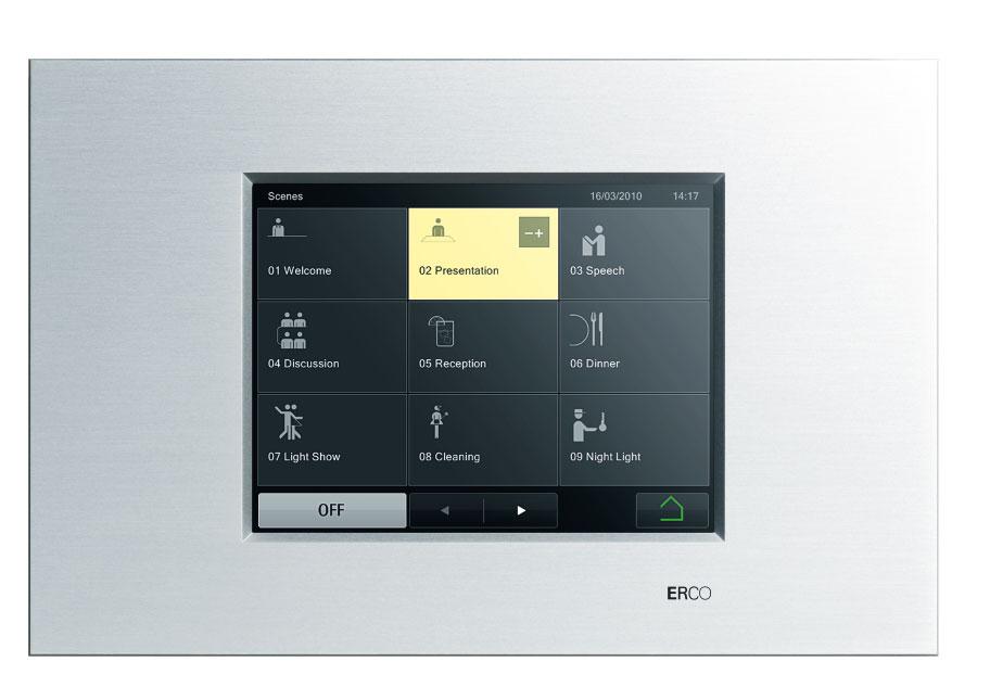 energético. El nuevo Light Changer+, gracias a su pantalla táctil en color de gran tamaño, hace más sencillo y cómodo que nunca el manejo del Light System DALI, el control de luz de ERCO. La interfaz de manejo gráfica e intuitiva establece nuevos estándares en cuanto a diseño y funcionalidad. Potentes