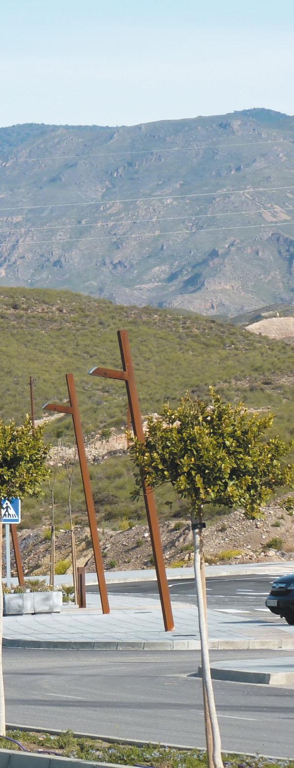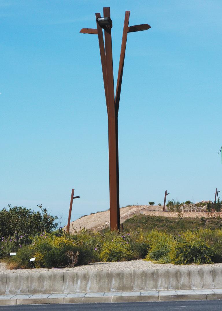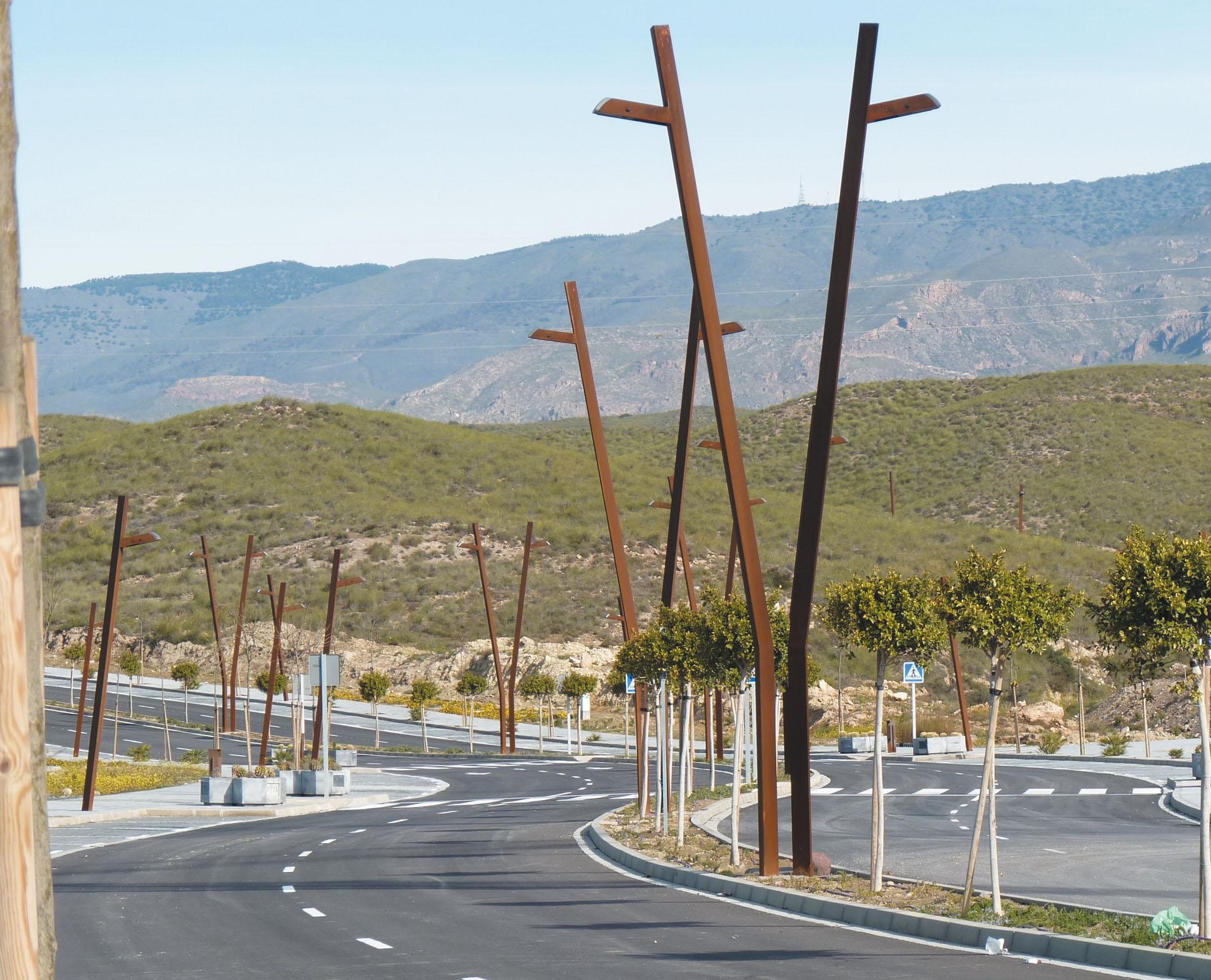 Los elementos que se utilizaron fueron, la JAVA versión PITA de 5 metros y 7 metros de altura, para las rotondas se utilizó la JAVA versión PITA de 9 metros con dos y tres brazos. La vegetación, iluminación, mobiliario urbano, pavimentos, tienen que tener algo en común en este proyecto, ser elementos que acompañen al paisaje Almeriense, suavizando sus grandes rasgos de aridez pero sin quitarle protagonismo.