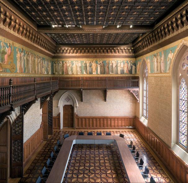 Por otro lado las operaciones de mantenimiento deberían poder realizarse de la manera más segura y económica posible, desde el suelo sin medios auxiliares. Así también se aseguraba la posibilidad de una limpieza frecuente de las luminarias. Hasta aquí los criterios objetivos que deberían ser de aplicación generalizada para la iluminación de espacios históricos. Los otros criterios, los que conforman una manera específica de entender la iluminación de edificios históricos y en los que nos apoyamos para el diseño de las luminarias que hoy encontramos en esta iglesia, tenían que ver en primer término con el encuentro de una solución unitaria que asegurara una implementación de luminarias simétrica. En segundo lugar con lograr un equilibrio de luminancias en la piel del edificio y un gradiente a la altura del observador que estuviera siempre dirigido hacia el altar mayor que propiciara una lectura neutra del espacio y un realce discreto de los objetos.