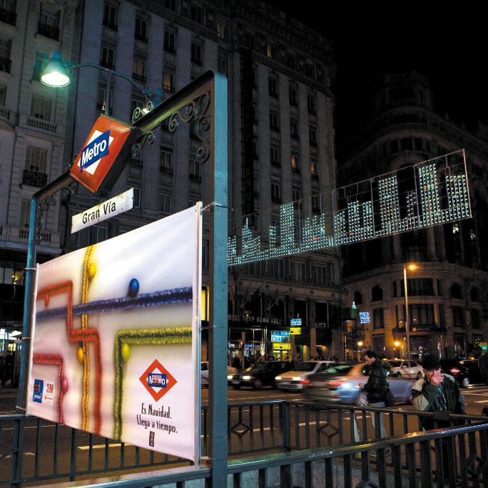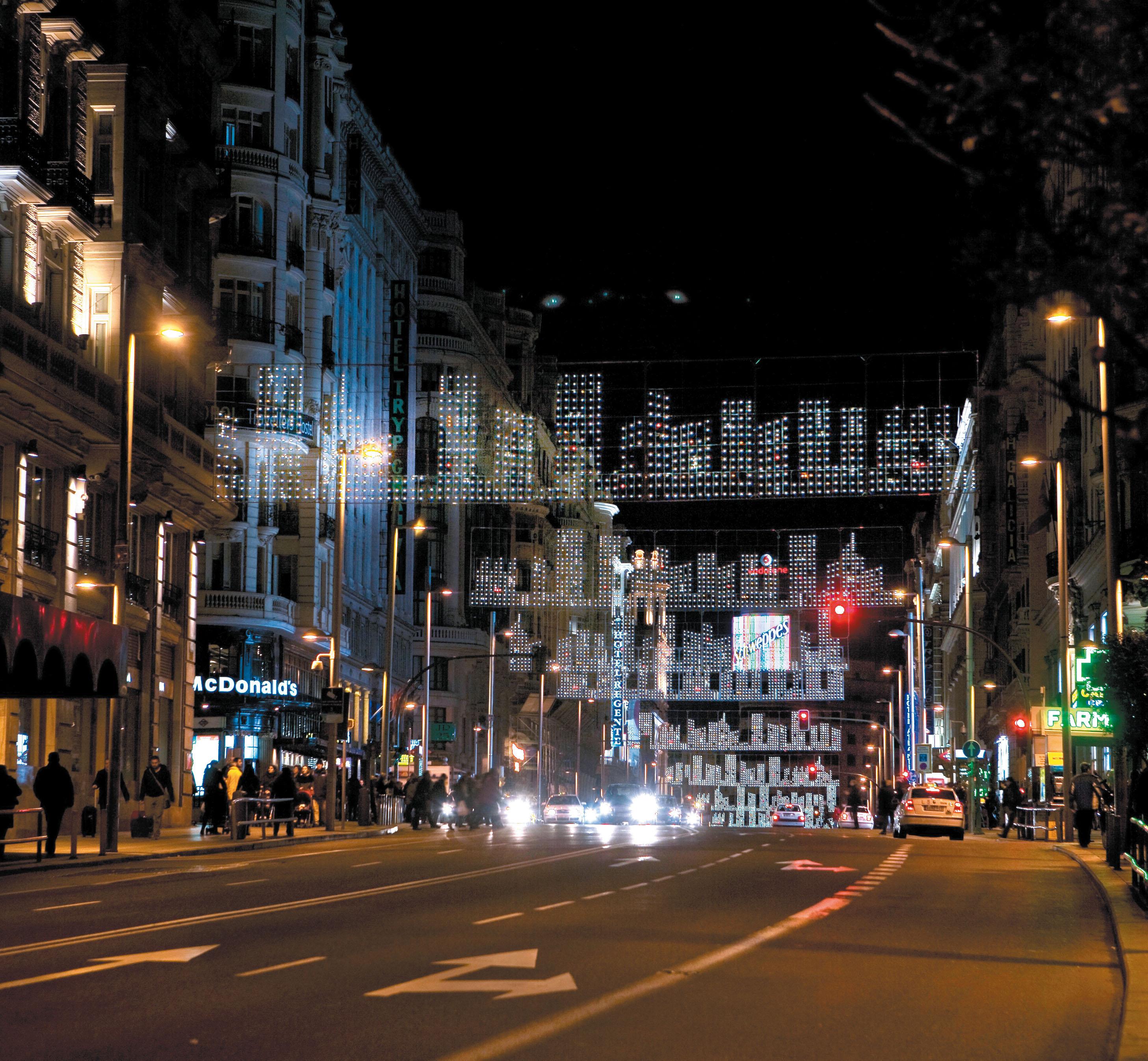 El Ayuntamiento de Madrid realizó un especial esfuerzo por consolidar buena parte del alumbrado navideño que desde hace unos años decoraba las calles de la capital. Aprovechando su potente fondo de armario para mantener, recolocar y jugar con muchos de los diseños más reconocidos, e identificativos y seductores. Entre los diseños que se mantuvieron destacó, por ejemplo, el de la Gran Vía, que