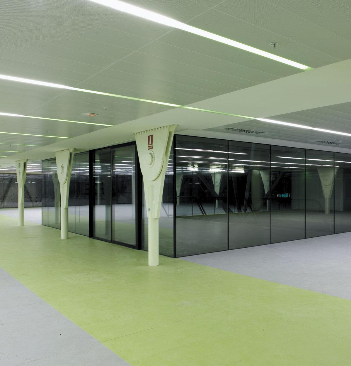 Consideramos este aspecto en dos vertientes: por un lado se trataba de instalar una servidumbre eléctrica en un espacio no construido para ello, por lo que imperaba el modo en que debía ser tendido el cableado y las conducciones, el anclaje de equipos, etc. No se podían escatimar