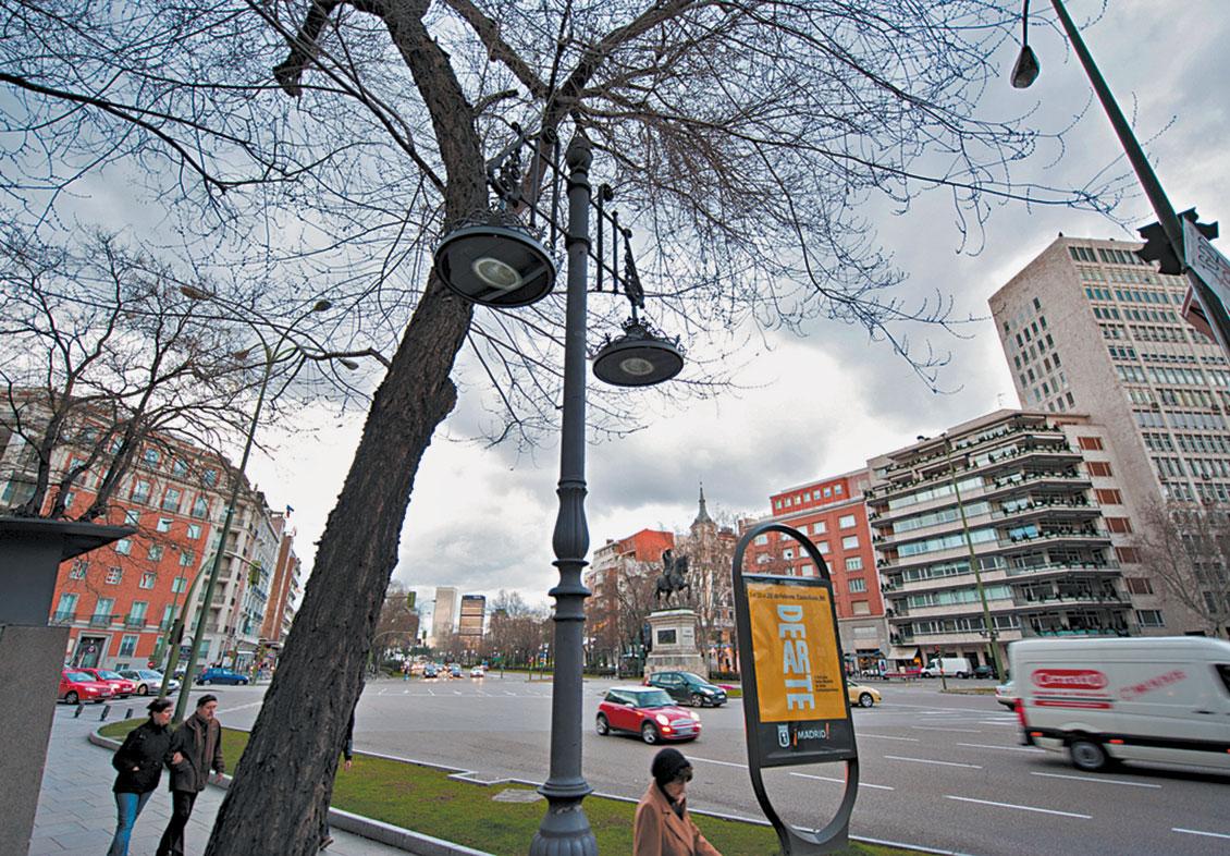 El Ayuntamiento de Madrid ha renovado la instalación del alumbrado público de los bulevares peatonales del Paseo de la Castellana en el tramo que va desde la Plaza de Colón hasta Nuevos Ministerios