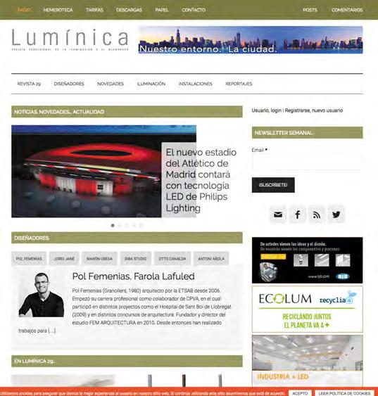 Prohibida la reprodución total o parcial de los textos y fotografías incluidos en la revista, sin previa autorización del autor. Las empresas anunciantes son las únicas responsables del contenido de los originales. Lumínica no se hace responsable de las opiniones expresadas por sus colaboradores.