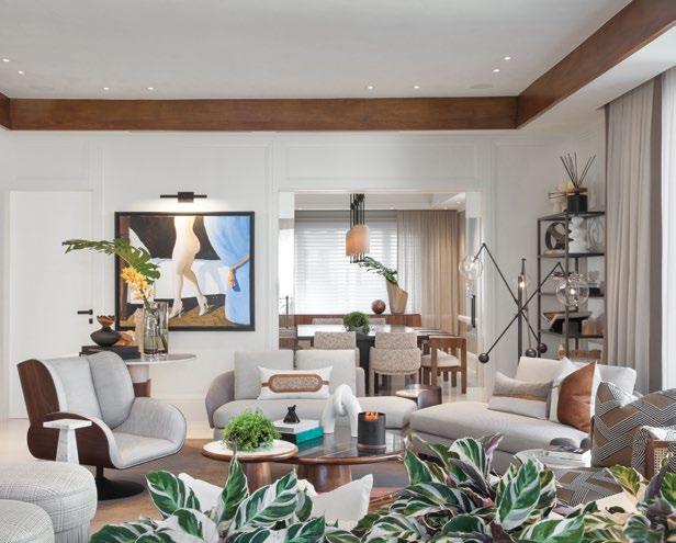 vida al espacio, destaca y realza los elementos más importantes. Es una apasionada de trabajar con distintas fuentes de luces como lámparas decorativas, apliques de paredes, luces de cuadros o ‘picture lights’ y todo tipo de luces indirectas, “sentimos que componiendo escenas distintas en un mismo espacio crea una sensación diversa y rica”. En este apartamento fue muy importante estar al día de las tendencias más frescas y actualizadas del mercado para esos toques modernos y contemporáneos que querían darles a los espacios. La mezcla de las nuevas tendencias con las piezas de valor como antigüedades y obras de arte especiales hicieron de este espacio el equilibrio en perfecta armonía.