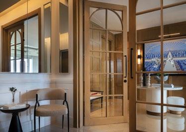 en espejos biselados, enmarcados por sus dobles puertas francesas con toque moderno.