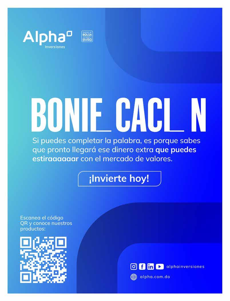 ABRIL 2024 12 12.00 10.00 8.00 6.00 4.00 2.00 0.0 0.08% 0.07% 0.06% 0.05% 0.04% 0.03% 0.02% 0.01% 0.00% -0.01% -0.02% No. Registro Nombre Emisor Programa de Emisión RD$ Programa de Emisión USD$ Circulación RD$ Circulación USD$ SIVEM-169 Parallax Valores 1,000,000,000 500,000,000 SIVEM-164 Haina Investment Co. Ltd. 105,000,000 45,000,000 SIVEM-162 Banco Promerica 1,000,000,000 300,000.00 SIVEM-159 Banco Lafise 300,000,000 300,000,000 SIVEM-158 United Capital 1,000,000,000 1,000,000,000 SIVEM-157 Banco Santa Cruz 1,000,000,000 1,000,000,000 SIVEM-156 Asociación Cibao 2,500,000,000 2,500,000.000 SIVEM-153 Consorcio Remix 5,000,000 2,000,000 SIVEM-152 Banco de Reservas 20,000,000,000 10,000,000,000 SIVEM-151 Banco Múltiple Caribe 1,000,,000,000 500,000,000 SIVEM-150 EGE Itabo 150,000,000 100,000,000 SIVEM-149 Banesco 1,000,000,000 1,000,000,000 SIVEM-148 Ingeniería Estrella 5,600,000,000 3,587,611,600 SIVEM-147 APAP 5,000,000,000 5,000,000,000 SIVEM-146 Alpha Sociedad de Valores 1,000,000,000 1,000,000,000 SIVEM-144 Banco Promerica 300,000,000 300,000,000 SIVEM-143 Parallax Valores 1,000,000,000 500,000,000 SIVEM-142 Banco Popular 20,000,000,000 10,000,000,000 SIVEM-140 Banco BHD 10,000,000,000 8,000,000,000 SIVEM-139 Banco Múltiple Santa Cruz 750,000,000 750,000,000 SIVEM-138 Alpha Sociedad de Valores 1,000,000,000 1,000,000,000 SIVEM-137 Parallax Valores 1,000,000,000 1,000,000,000 SIVEM-136 UC United Capital 1,000,000,000 1,000,000,000 SIVEM-134 Acero Estrella 2,576,000,000 2,576,000,000 SIVEM-135 Banfondesa 300,000,000 300,000,000 SIVEM-133 Banco Múltiple Santa Cruz 1,000,000,000 1,000,000,000 SIVEM-132 UC-United Capital P. de B. 1,000,000,000 1,000,000,000 SIVEM-131 APAP 3,000,000,000 3,000,000,000 SIVEM-129 Banco Promerica 500,000,000 500,000,000 SIVEM-125 Parallax Valores 1,000,000,000 1,000,000,000 SIVEM-124 Gulfstream Petroleum Dom. 5,025,310,000 5,025,310,000 SIVEM-122 Consorcio Remix 10,000,000 10,000,000 SIVEM-121 Asociación Cibao 3,000,000,000 3,000,000,000 SIVEM-120 Banco BHD 10,000,000,000 5,000,000,000 SIVEM-118 Consorcio Minero Dom. 4,820,480,000 3,952,262,219 SIVEM-111 C. E. Punta Cana-Macao 23,000,000 23,000,000 SIVEM-106 Dominican Power Partners 300,000,000 260,000,000 SIVEM-104 Asociación La Nacional 1,000,000,000 1,000,000,000 SIVEM-103 Banco Múltiple Caribe Int. 230,000,000 230,000,000 SIVEM-101 Banco Popular Dominicano 10,000,000,000 10,000,000,000 SIVEM-100 APAP 3,000,000,000 2,700,000,000 SIVEM-097 Consorcio Remix, S.A. 300,000,000 100,000,000 SIVEM-091 C. E. Punta Cana-Macao 100,000,000 76,853,800 SIVEM-085 Banco de Reservas 10,000,000,000 10,000,000,000 SIVFOP-008 Fideicomiso Larimar I No. 04-FP 100,000,000 89,857.480 SIVFOP-007 Fideicomiso Bona Capital 250,000,000 250,000,000 SIVFOP-003-P2 Fideicomiso RD Vial 50,000,000,000 6,000,000,000 SIVFOP-003 Fideicomiso RD Vial 50,000,000,000 24,532,710,890 Febrero de 2024 Valor transado Mercado Primario BHDVAL 522,972,456 CCI 85,774,890 CITIV 14,778,735 INRES 1,071,090,387 IPSA 1,121,505,400 JMMB 552,041,539 PARVA 2,137,113,919 PRIMMA 88,874,150 Total 5,594,151,475 Mercado Secundario ALPHA 49,762,146,243 BHDVAL 11,244,595,787 CCI 2,106,921,426 EXCEL 39,554,557,638 INRES 3,144,169,409 IPSA 10,272,594,776 ISANTACR 1,747,152,878 JMMB 34,522,455,142 MPBMULTI 2,441,705,353 PARVA 69,416,619,850 PRIMMA 47,022,267,260 TIVALSA 81,700,393,970 UNICA 34,463,534,850 VERTEX 2,042,700,969 Total 389,441,815,551 En pesos dominicanos. Fuente: BVRD EMISIONES DE VALORES DE RENTA FIJA APROBADAS POR LA SIV, EN CIRCULACIÓN HASTA FEBRERO 29 2024 DEVALUACIÓN ANUALIZADA Aumento anualizado de la tasa de cambio M A M J J A S O N D E M Fuente: SIMV NEGOCIACIONES POR PUESTO DE BOLSA EN EL MERCADO BURSÁTIL Crecimiento mensual anualizado del Índice de Precios al Consumidor TASA ANUALIZADA DE INFLACIÓN Fuente: BCRD 3.33% MAR ABR MAY JUN JUL AGO SEP OCT NOV DIC 2023 2022 ENE FEB MAR ABR MAY JUN JUL AGO SEP OCT NOV DIC 2024 ENE FEB
